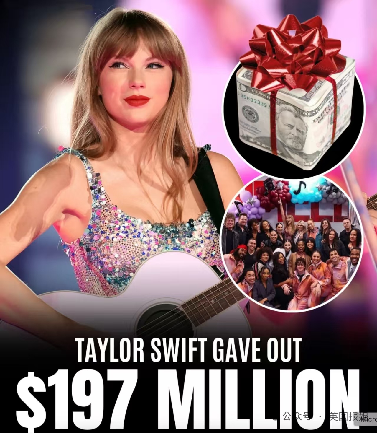 秦岭笑谈 “神仙老板”全球第一女霸总霉霉(Talyor Swift)给全体员工发了1.97亿美元💵奖金全球流行音乐巨星“霉霉”泰勒·斯威夫特再次成为媒体焦点,她为参与“时代巡演”的工作人员发放了高达1.97亿美元,(每人平均可拿到几十万美元),有人拿到奖金时激动得差点晕倒😵💫。