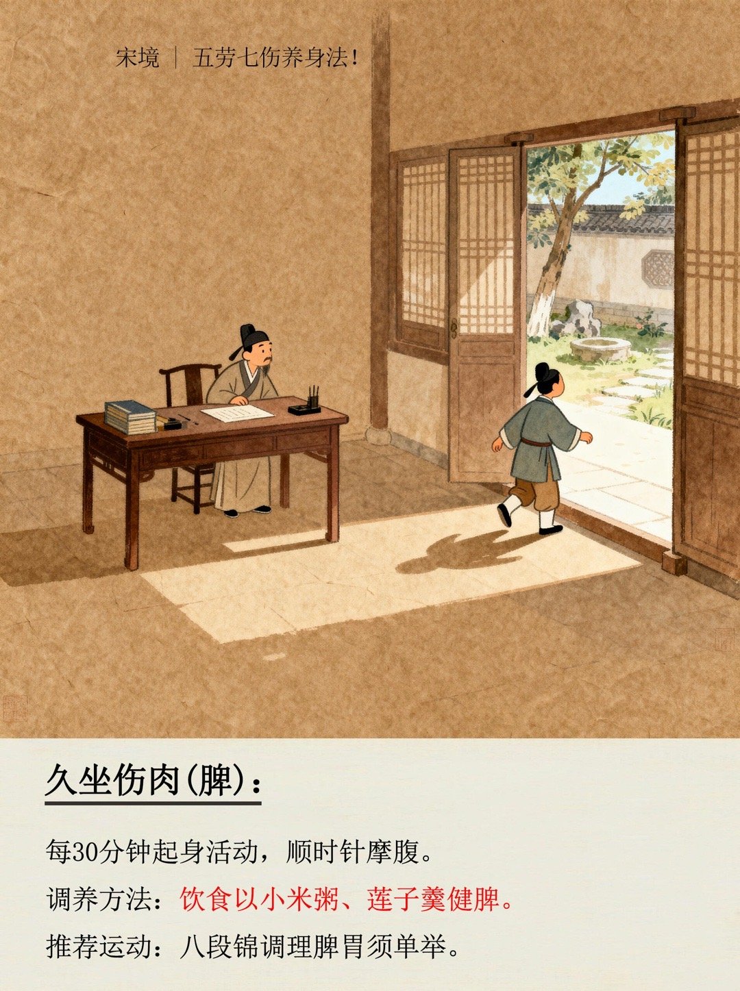 五劳七伤,跟着古人学十二伤身调养方法!你是不是这样:看电脑眼干、久坐腰酸、躺久了反而更累?🤯小心!这可能就是中医说的“五劳七伤”在耗你的身体!
