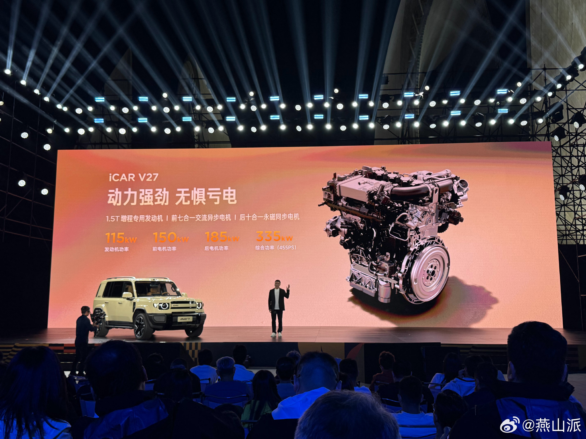 尽兴一起玩iCRA首届用户节,V27再亮相。外观延续家族方盒子造型,采用增程动力形式,搭载奇瑞1.5T增程专用发动机,综合功率为455Ps、综合续航超1200Km,相比V23空间更大,更适合家用,而且还没有续航焦虑。另外,V27的试驾车明年1月就会到店,上市时间也为一季度。