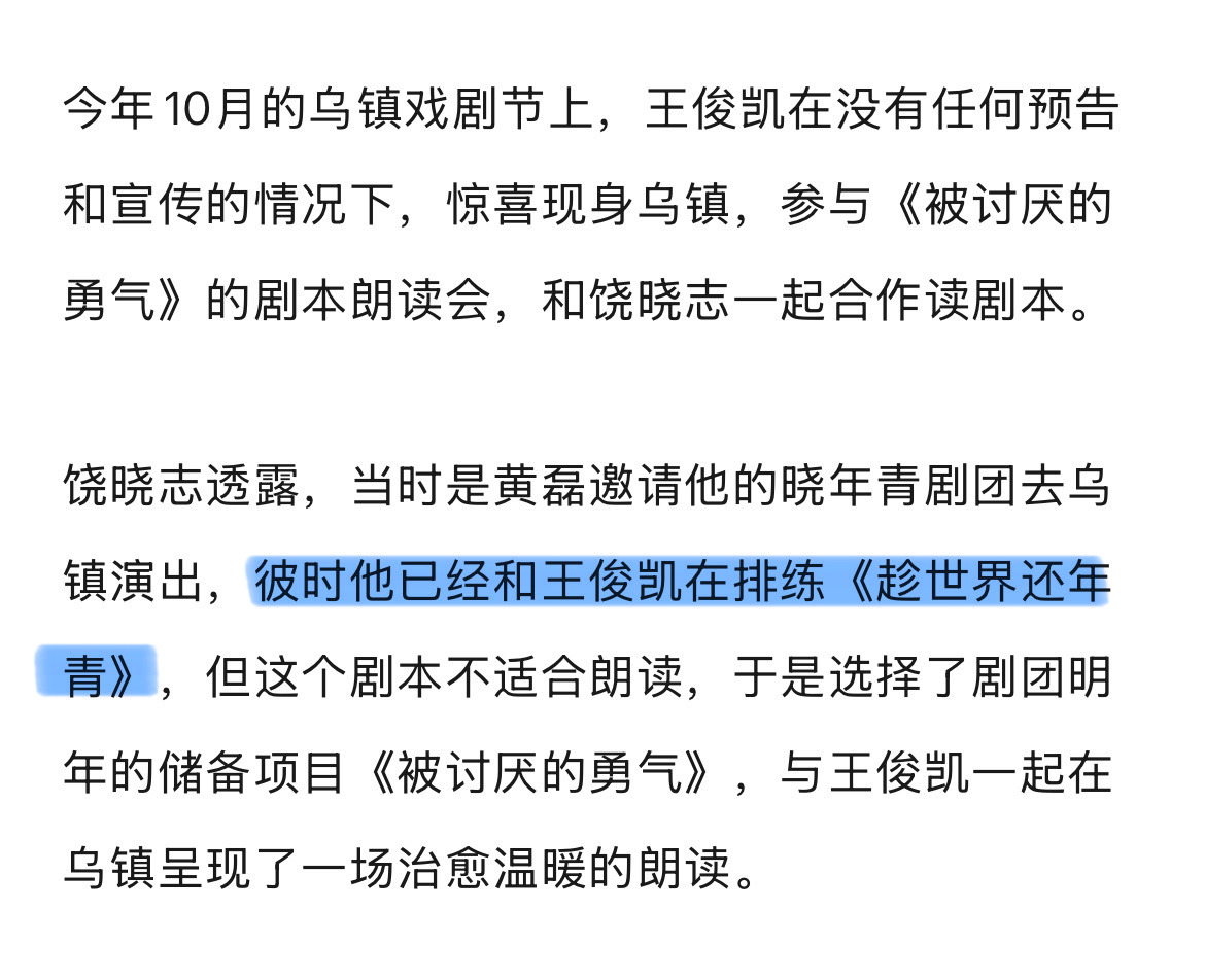 原来在《万里归途》路演的时候导演就邀请小凯演话剧了,并且《趁世界还年青》的排练时间比我想象的还要早很多,至少从10月就开始了王俊凯话剧趁世界还年青