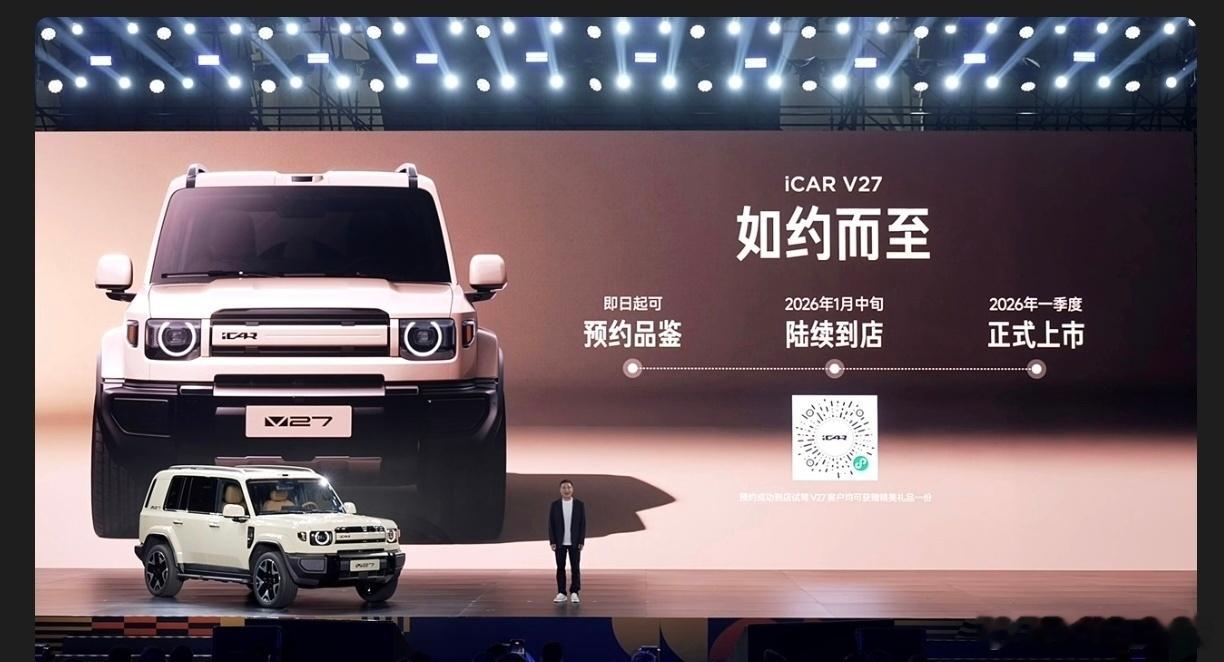 有点子意思,iCAR今晚也搞了个用户节,并且公布了全新用户品牌「iCAR CLUB」,同时之前亮相过的iCAR V27也有消息了,1月中旬实车到店,明年Q1季度正式上市,这车偏向于家庭用户群体,同时呢又能满足个性化需求。之前也聊过这车,方盒子造型,2910mm的轴距,搭载奇瑞的黄金增程系统,1.5T发动机可以实现210km纯电续航,综合续航1200km,也可以6kW对外放电,然后再加上猎鹰700智驾,感兴趣吗