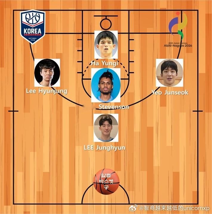 Jarin Stevenson(2005-211cm-F/C)有望披上韩国男篮球衣,参加爱知名古屋亚运会,他本人也再次表达了想为韩国男篮出赛的想法,他说自己在2014现场见证了父亲参加了亚运会的场景,如今依然记忆犹新。韩国男篮的“梦之队”阵容有望组建成功,如果亚运会夺得金牌,李贤重也可以免服兵役李贤重亚洲篮球中国男篮
