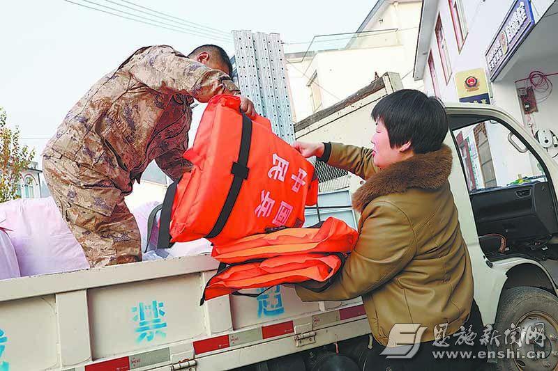 12月10日,建始县长梁镇专职武装干部为双河村送去应急抢险装备。