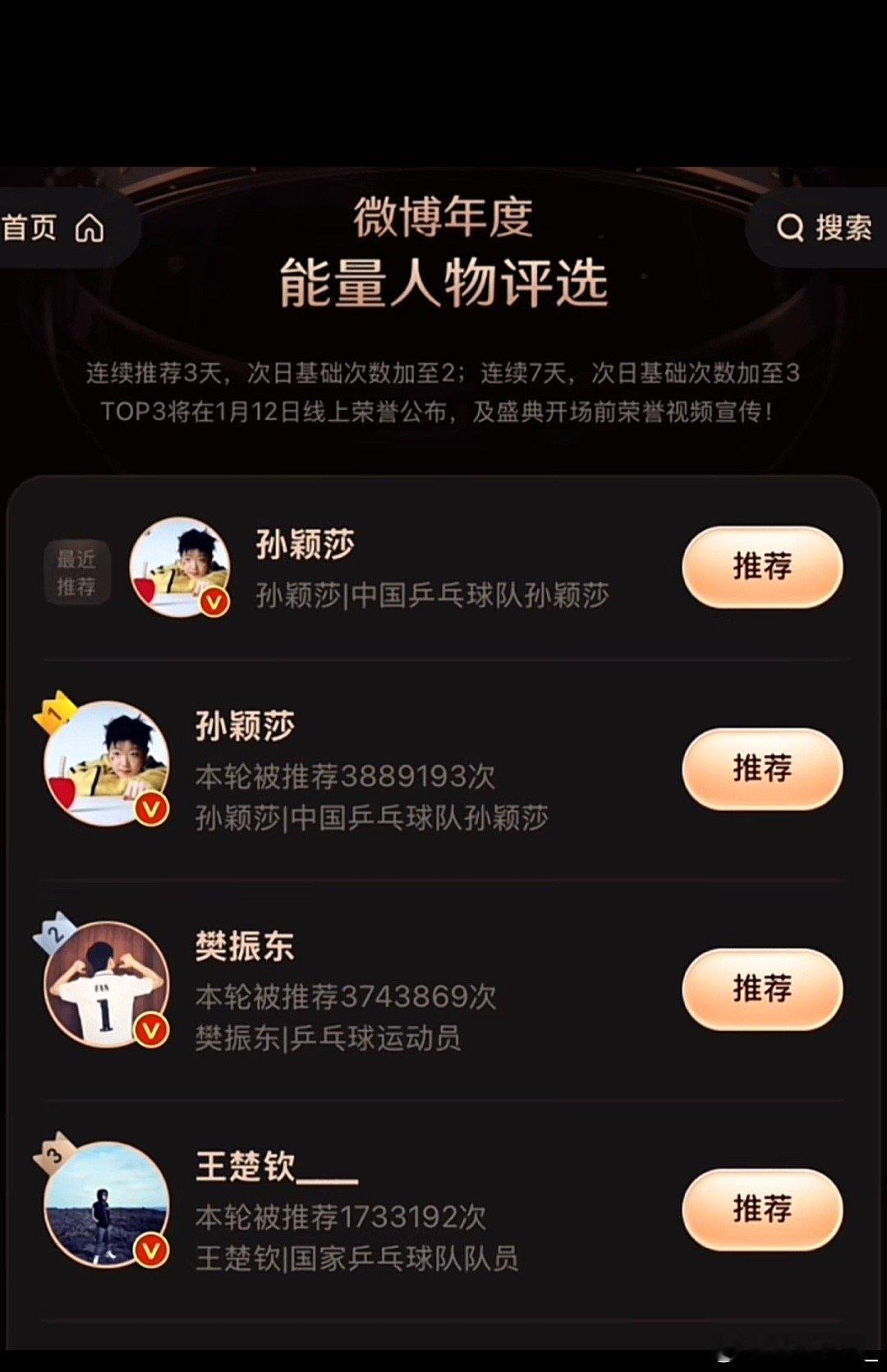 微博之夜微博KING和QUEEN时间过得好快!不知不觉2025年就这么快结束了!感觉去年的微博之夜就在眼前,乒乓球三兄弟同时入场时的高光时刻,还历历在目!国乒“三兄弟”马龙、樊振东和王楚钦确实同台亮相,他们代表国乒领取了“微博年度榜样体育团队”奖杯,并分享了各自职业生涯中最难忘的一分。三人身着西装,帅气登场,成为全场焦点,展现了与赛场上截然不同的魅力!今年的微博之夜马上来到,你的榜样能量人物是谁?快点给他投一票吧!