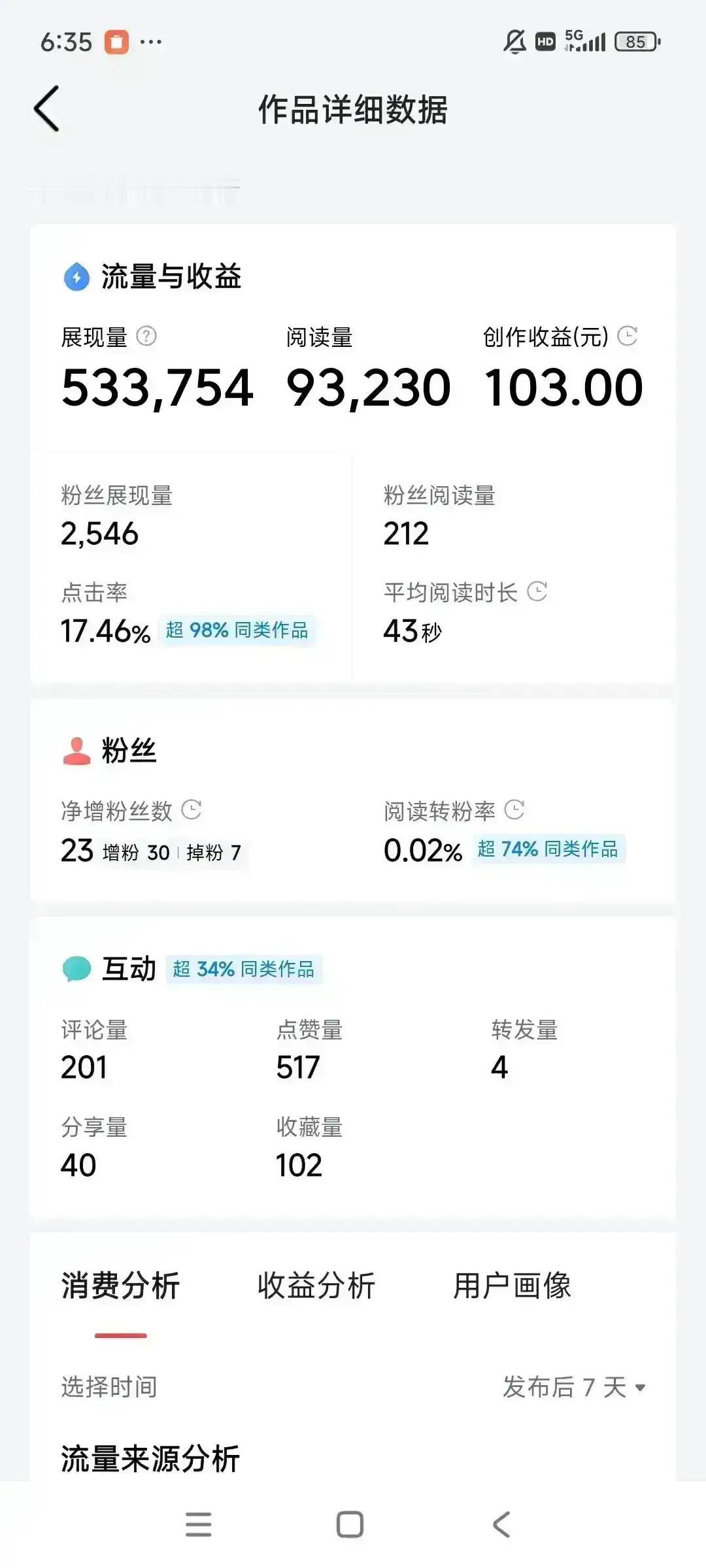 重磅上线!我的年度鉴定结果是“狂热汽车科技的点赞收割机”,你的结果又是什么?快来一起解锁专属年度报告! 起初来头条的目的也只是为了转移注意力,因为我太爱炒股了。每天都跟打仗一样,在股市打拼。不但影响工作而且还影响生活,关键是也赚不到多少钱,搞得疲惫不堪。 来头条开始写着摆脱炒股上瘾。没想到的是炒股算是戒掉了,结果参加头条活动上瘾了,以至于一发不可收拾!
