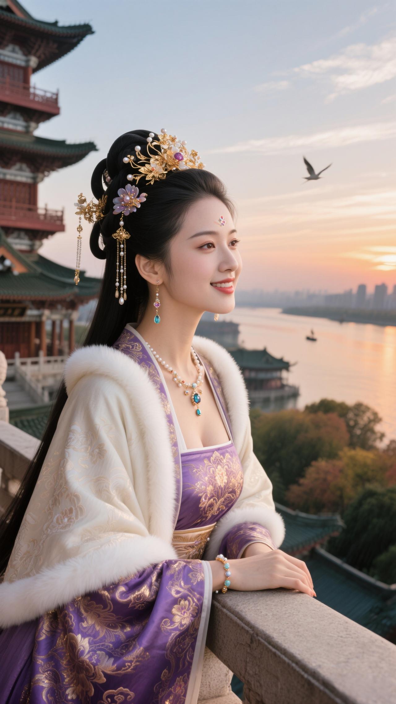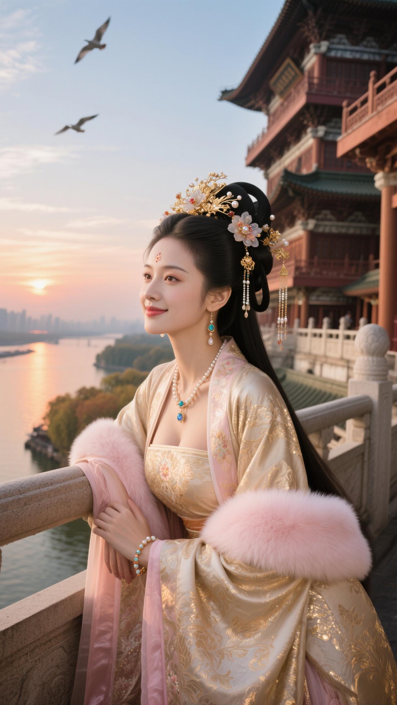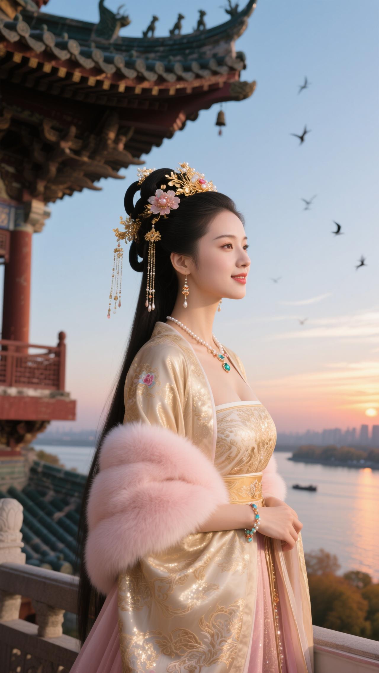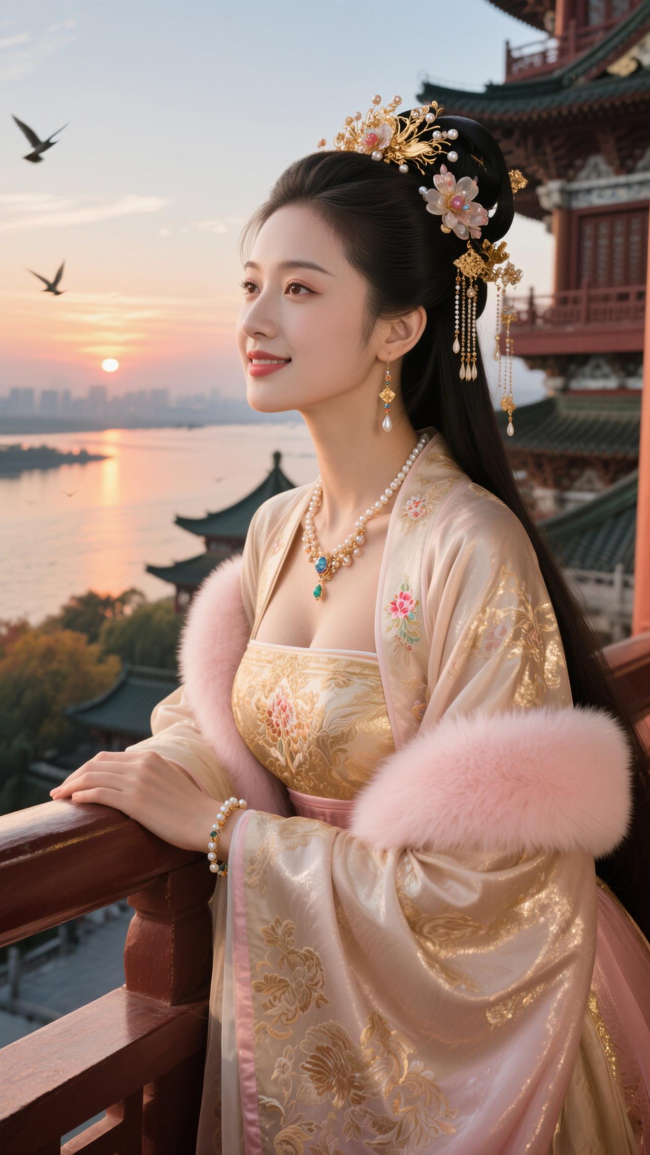 落霞与孤鹜齐飞,秋水共长天一色。原创古风计划 东方美 国风古韵 汉服写真 古风美女 鹧鸪天·登楼见霞鹜 落霞铺水染长天,孤鹜横空影自闲。 秋水连云凝一色,危楼凭栏醉红颜。 风细细,意绵绵,江声遥送旧年欢。 繁华过眼皆如梦,唯记霞飞水接天。