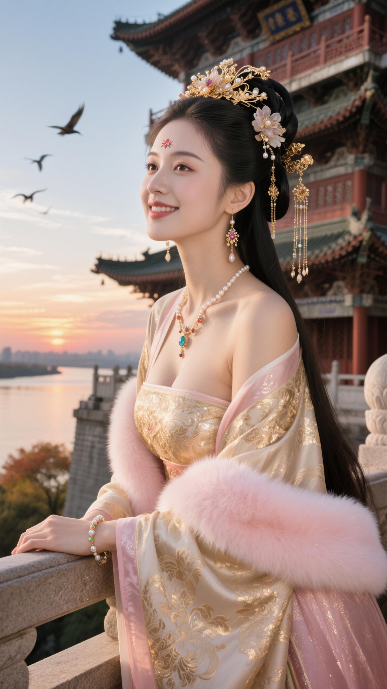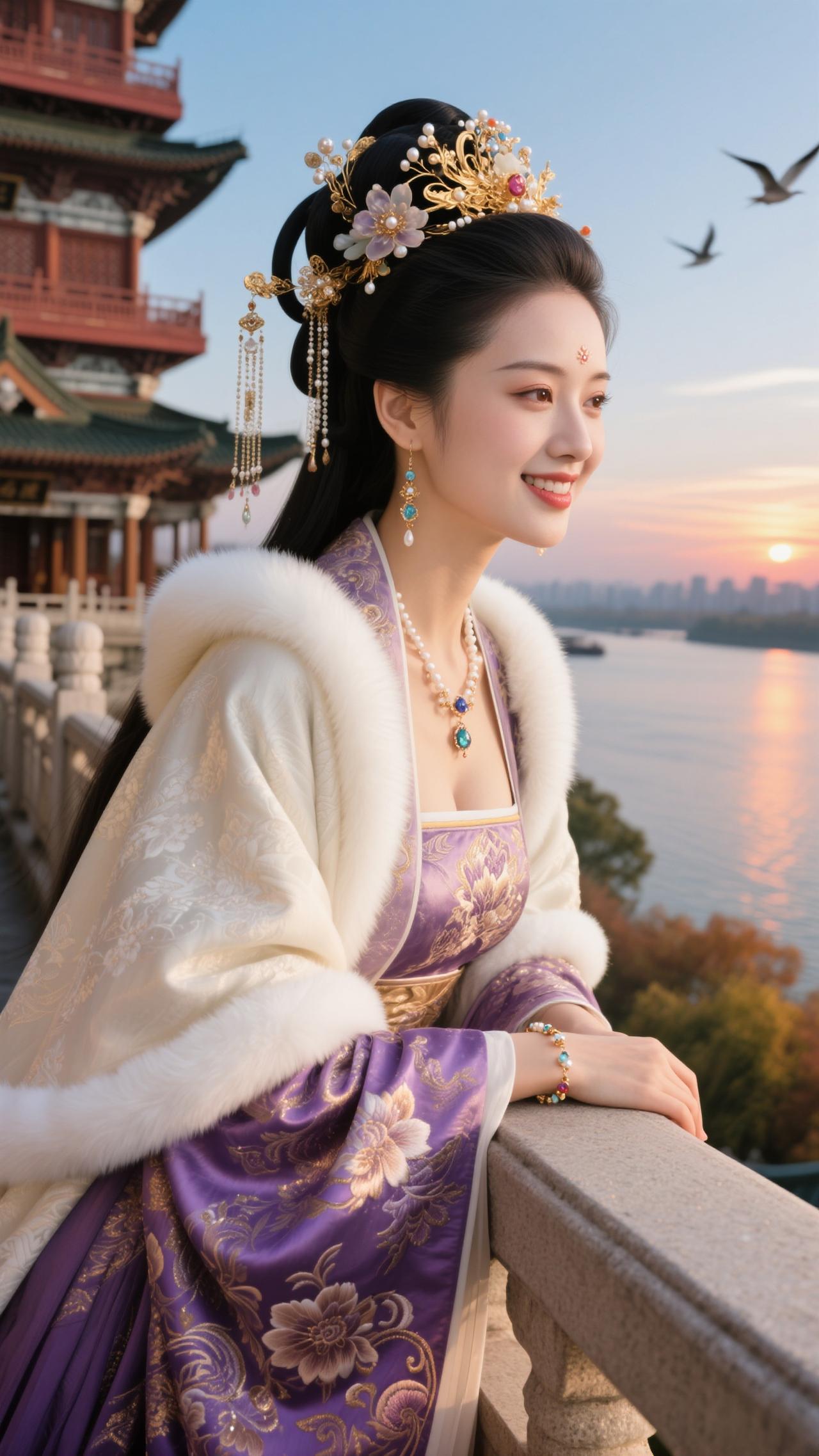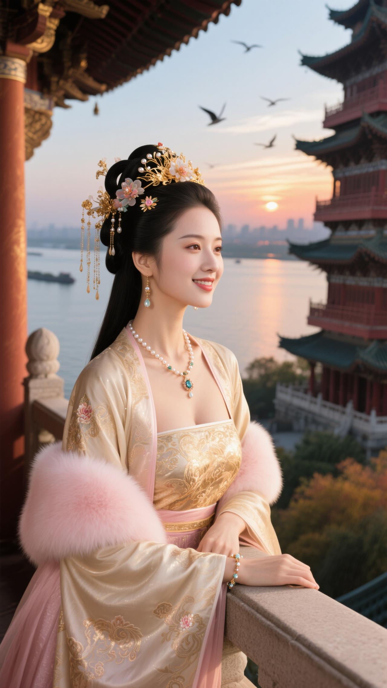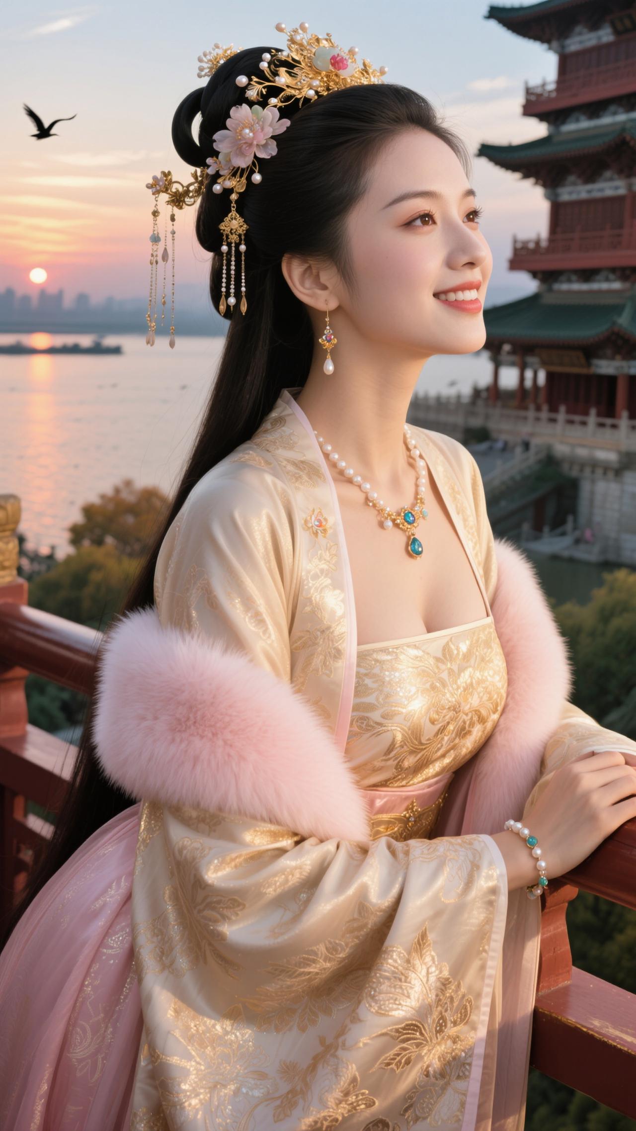 落霞与孤鹜齐飞,秋水共长天一色。原创古风计划 东方美 国风古韵 汉服写真 古风美女 鹧鸪天·登楼见霞鹜 落霞铺水染长天,孤鹜横空影自闲。 秋水连云凝一色,危楼凭栏醉红颜。 风细细,意绵绵,江声遥送旧年欢。 繁华过眼皆如梦,唯记霞飞水接天。