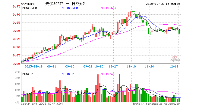 12月16日,光伏50ETF(516880)跌3.10%,成交额2196.47万元。当日份额增加600.00万份,最新份额为26.12亿份,近20个交易日份额增加1.08亿份。最新资产净值计算值为20.40亿元。