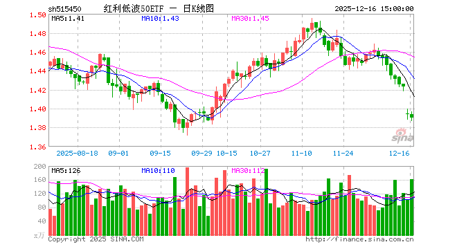 12月16日,红利低波50ETF(515450)跌0.36%,成交额2.26亿元。当日份额增加9850.00万份,最新份额为104.00亿份,近20个交易日份额增加11.45亿份。最新资产净值计算值为144.53亿元。
