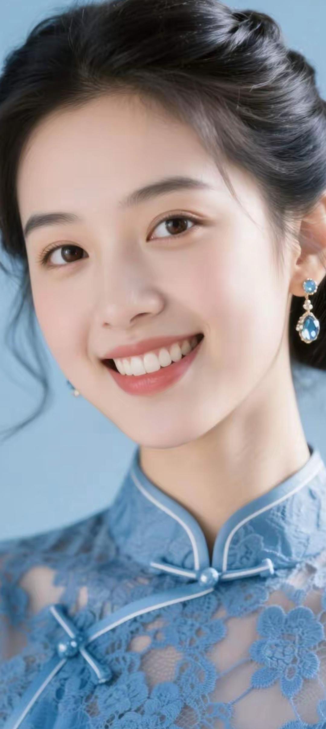 甜美笑容,蓝裙飘逸,优雅气质,惊艳瞬间!