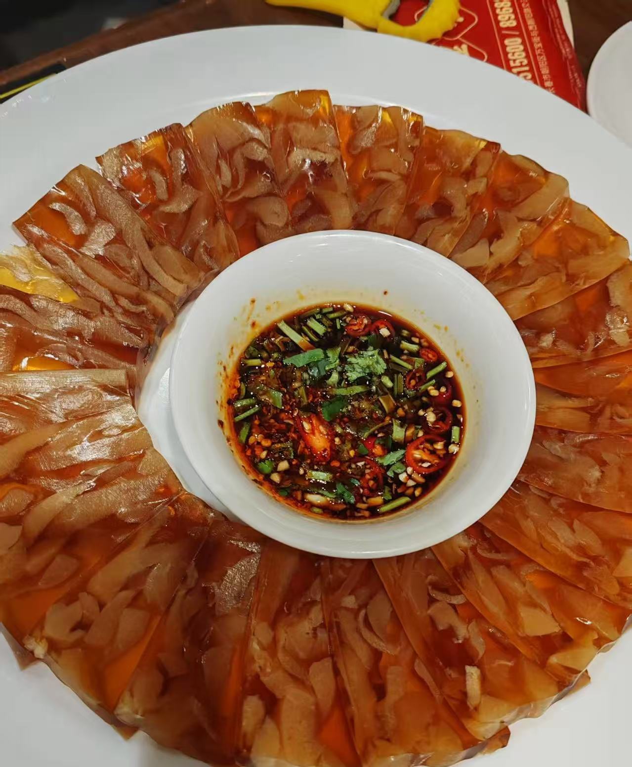 3️⃣.牛筋冻,采用牛筋、牛皮、牛骨清汤制作而成,吃起来像咸口的果冻。
