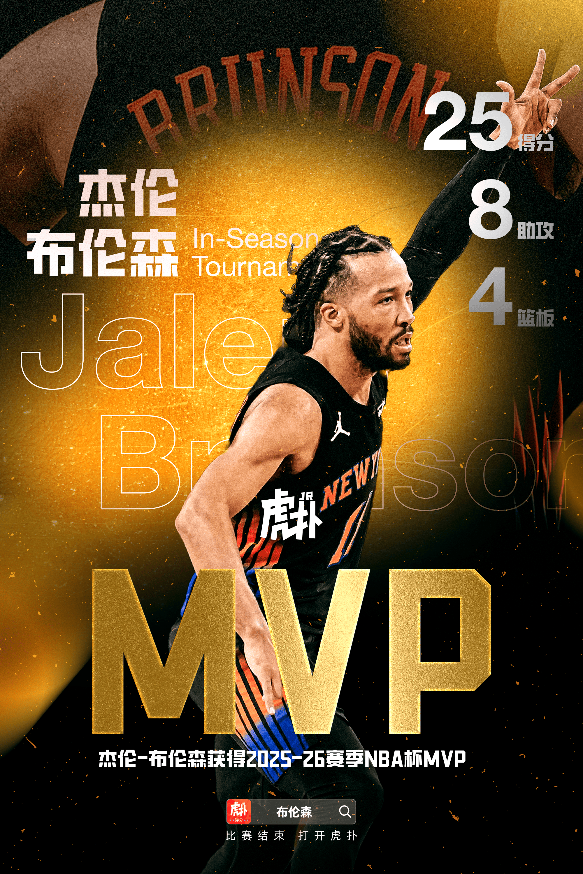 虎扑12月17日讯今日的NBA杯决赛已经结束,尼克斯夺得了本届杯赛的冠军,杰伦-布伦森获得了本届杯赛MVP。
