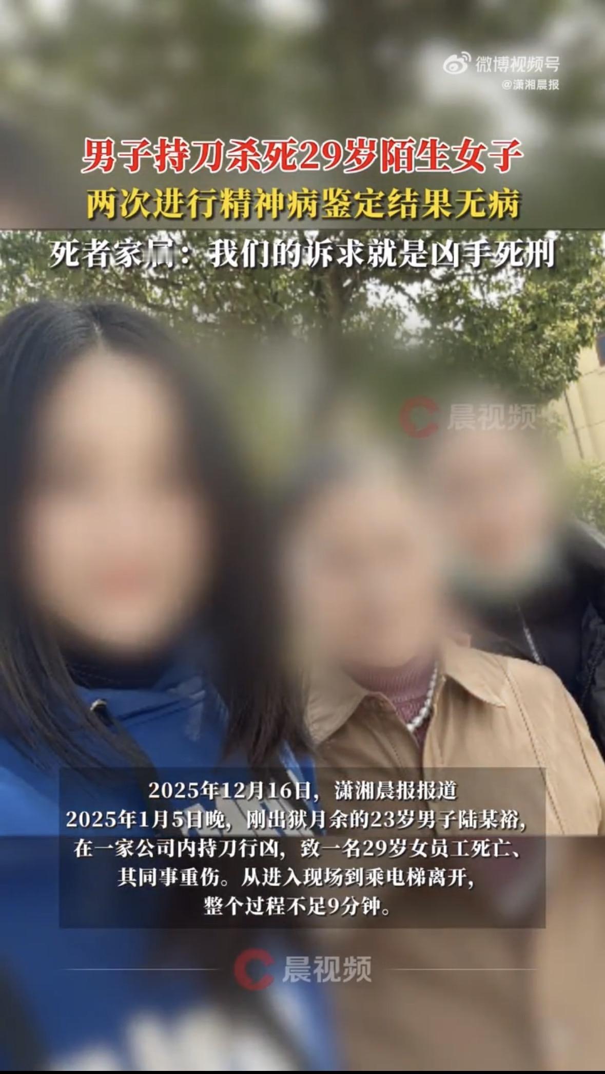 才出狱一个多月,23岁的男人提着刀就闯进了公司。9分钟,两条人命一死一重伤。杀完人,他居然淡定地在电梯里听起了歌!这得是多冷血的心肠? 这个杀人者陆某裕,年纪轻轻却已是监狱常客。未成年时就蹲过九个月,2021年又进去三年,去年11月底刚放出来。谁都想不到,一个多月后,他会把刀对准完全陌生的女孩。29岁的姑娘,到义乌上班还不到一个月,开门迎来的却是夺命的疯魔。 最可恨的是手段。两把刀,专砍背部、头部、颈部,刀刀致命。姑娘倒下,同事去拉,也遭重创。事后他竟声称“不想活了,找人抵命”,转头又辩称自己有精神病。整整一年,两次鉴定,结果清清楚楚:作案时精神完全正常,必须承担全部责任! 听到开庭消息,姐姐的心却在滴血。感情最好的妹妹,无缘无故成了别人厌世的牺牲品。她只求一个公正:死刑。我完全支持家属的诉求。这不是纠纷,不是冲动,这是对生命的极端漠视。若这样的恶魔还能借故脱罪,公道何在?必须严惩,告慰无辜,捍卫生者最基本的安心。