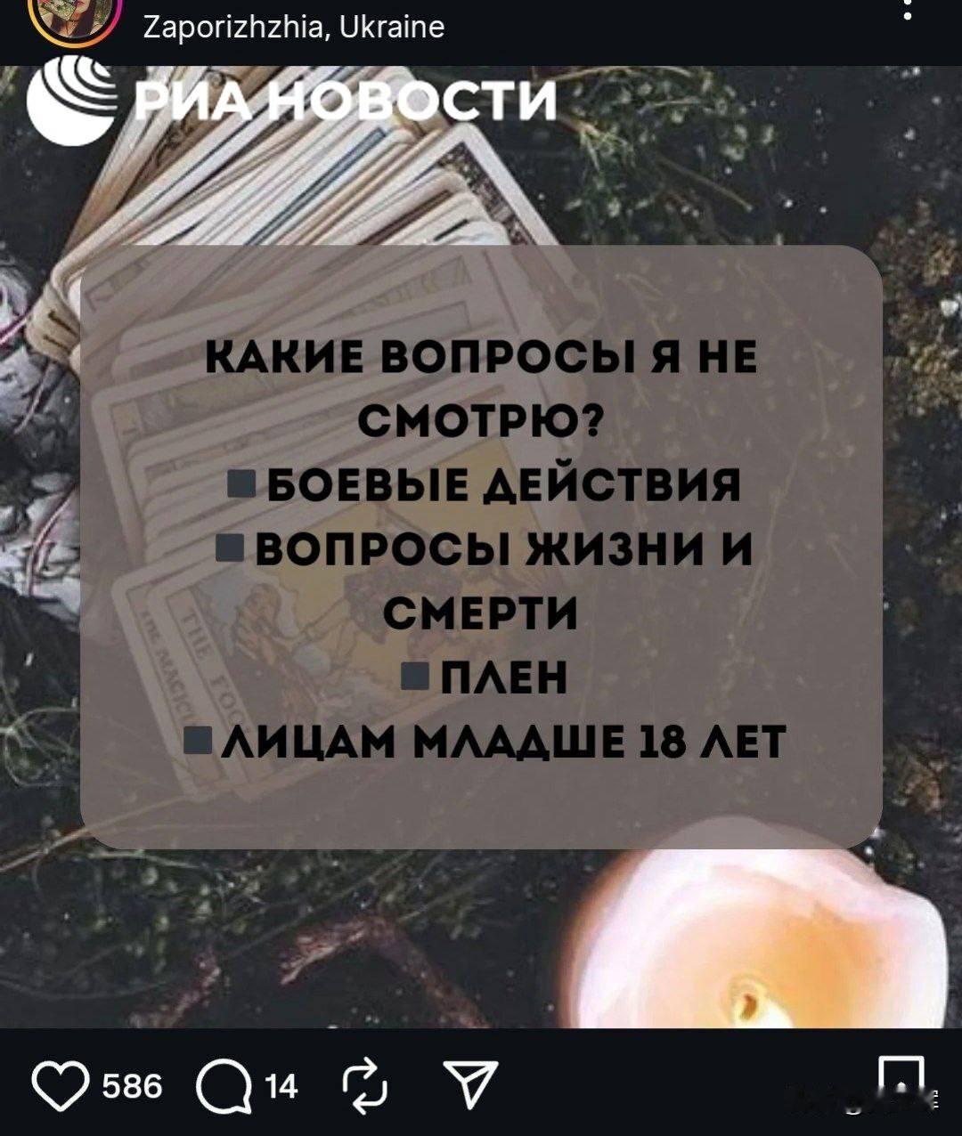 【求神】乌克兰人越来越频繁地向占卜师咨询关于乌克兰战争的预测。此类服务在第聂伯罗彼得罗夫斯克州的居民中尤其受欢迎。人们询问是否应该离开自己的城市,以及留在当地有多安全。一些塔罗牌师和通灵者甚至给出了可能发生导弹袭击的大致时间和方向。