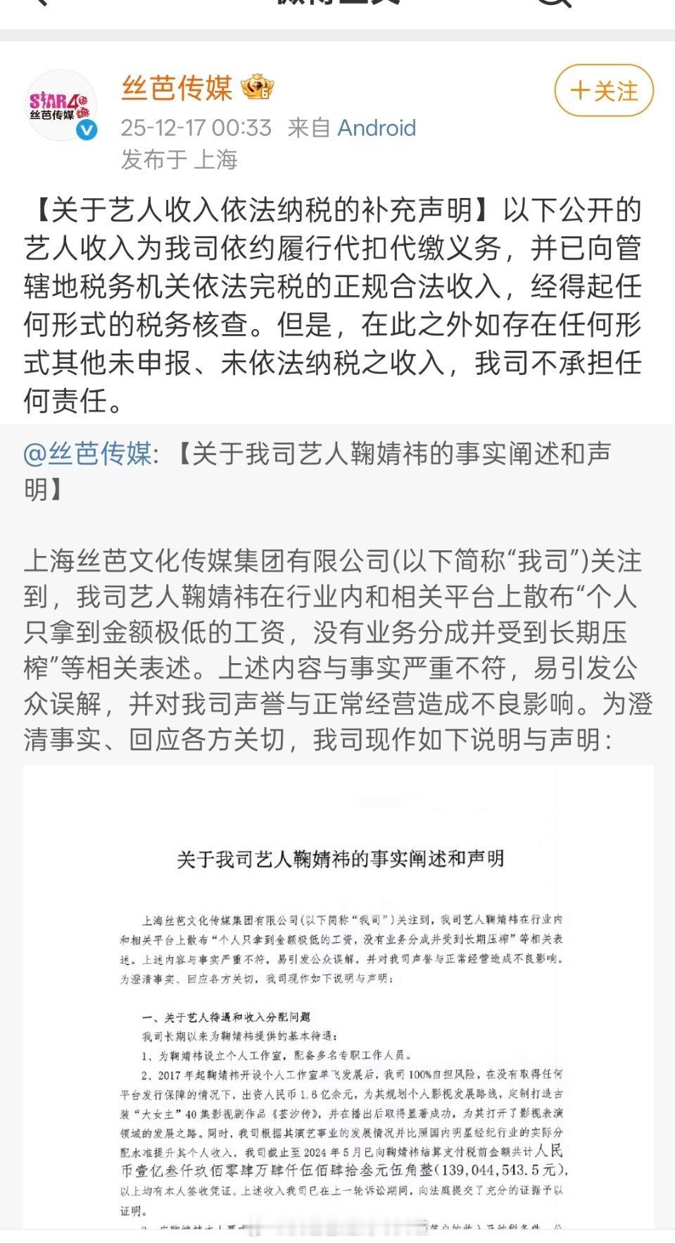 我不相信鞠婧祎有其他税务问题,如果有,丝芭不可能等了基本一年才跳出来明涵很大可能就是为了让其他合作方因为担心可能有税务问题而不敢找鞠婧祎合作,实际丝芭手上啥证据都没有 鞠婧祎收入丝芭说鞠婧祎经常报销和工作无关支出