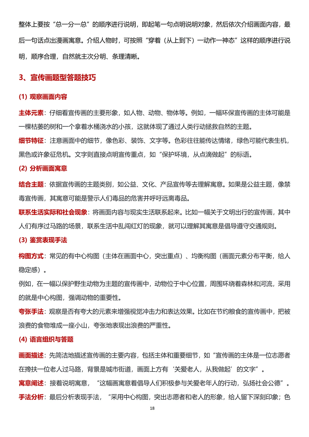 ✔图文类题型:包括表格类、漫画类和宣传画的答题技巧