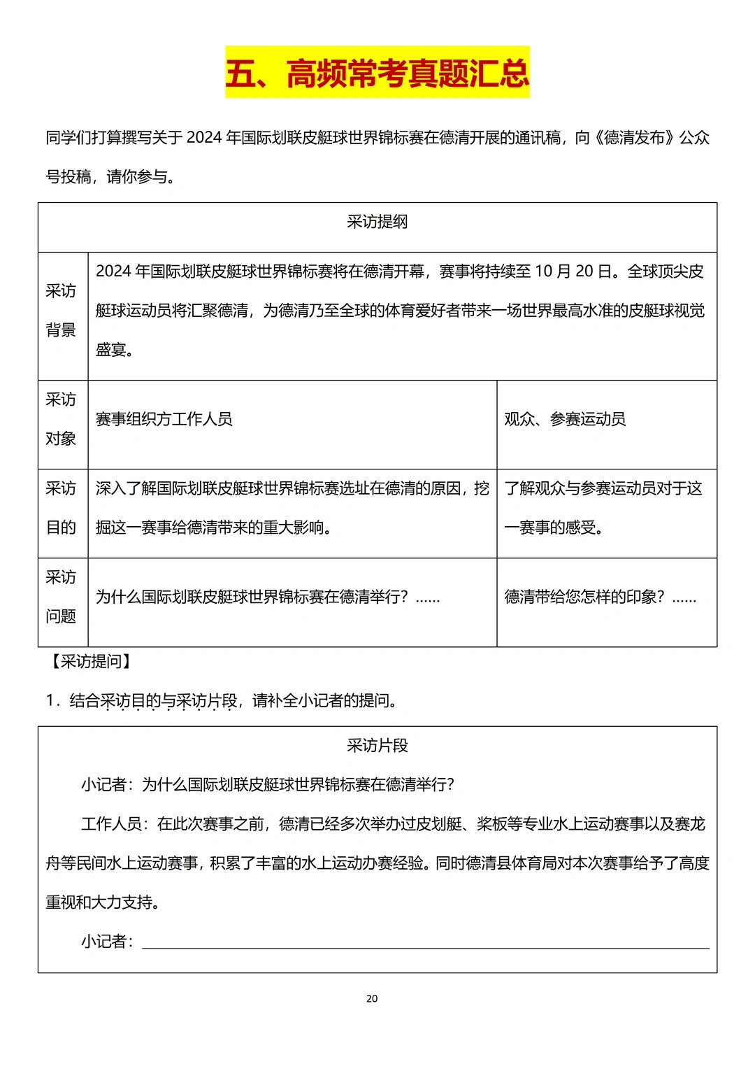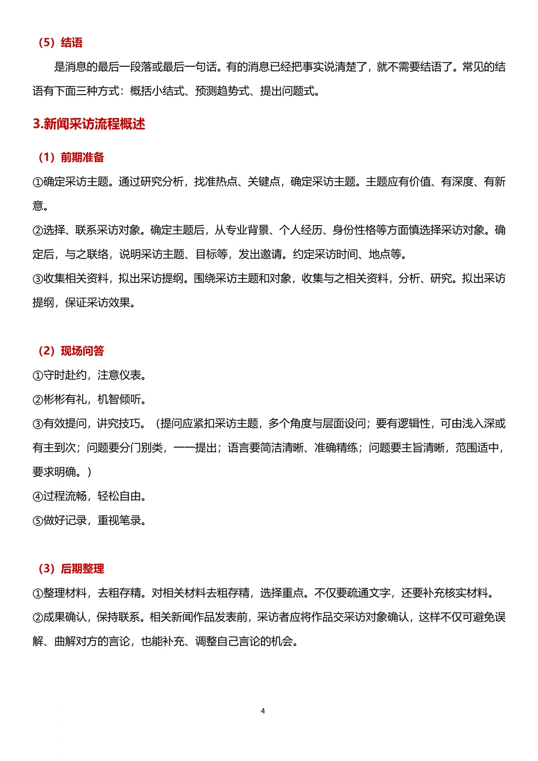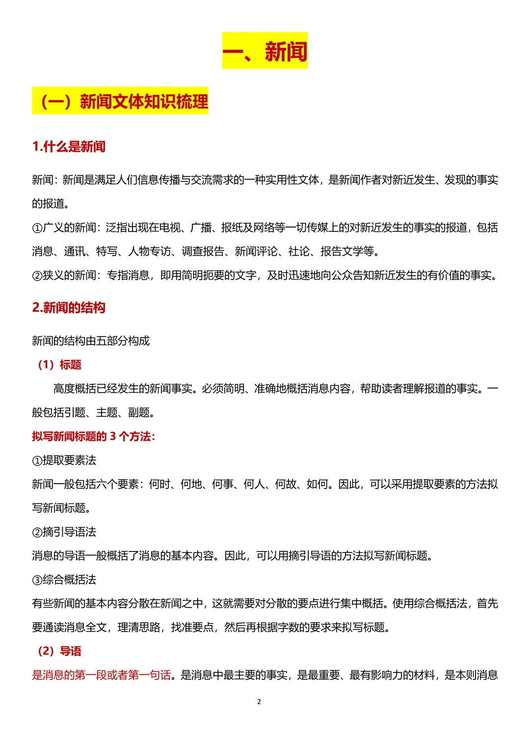 1、新闻: 要熟悉新闻的文体知识(六要素、五结构),熟悉拟写新闻标题、新闻提纲、采访问题的方法。