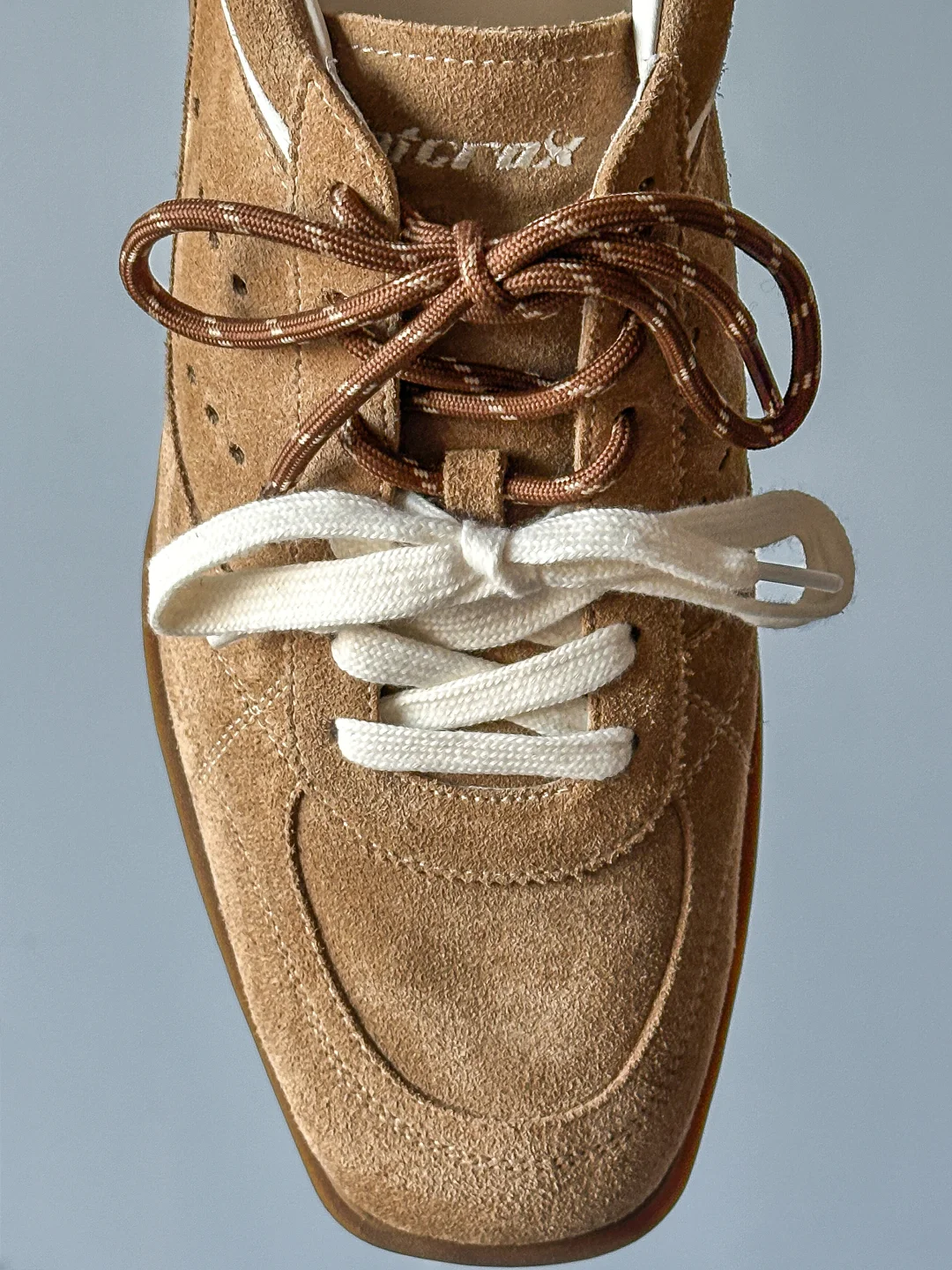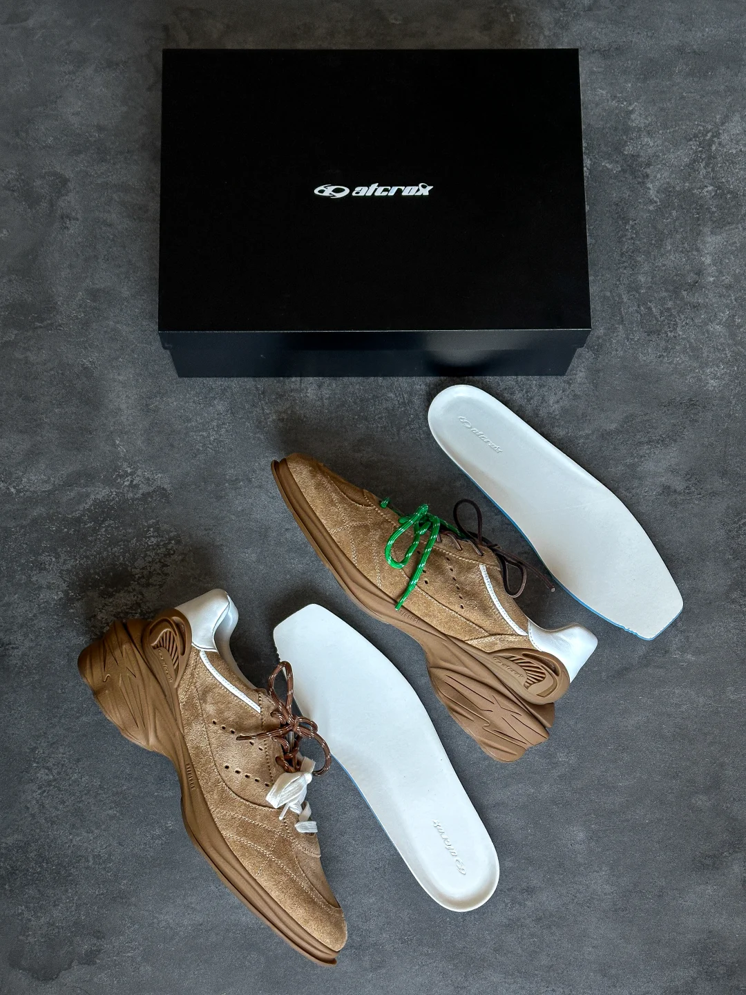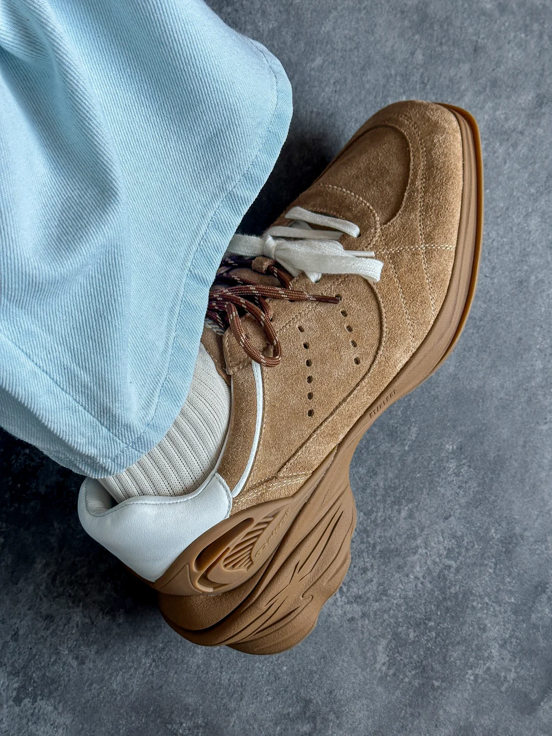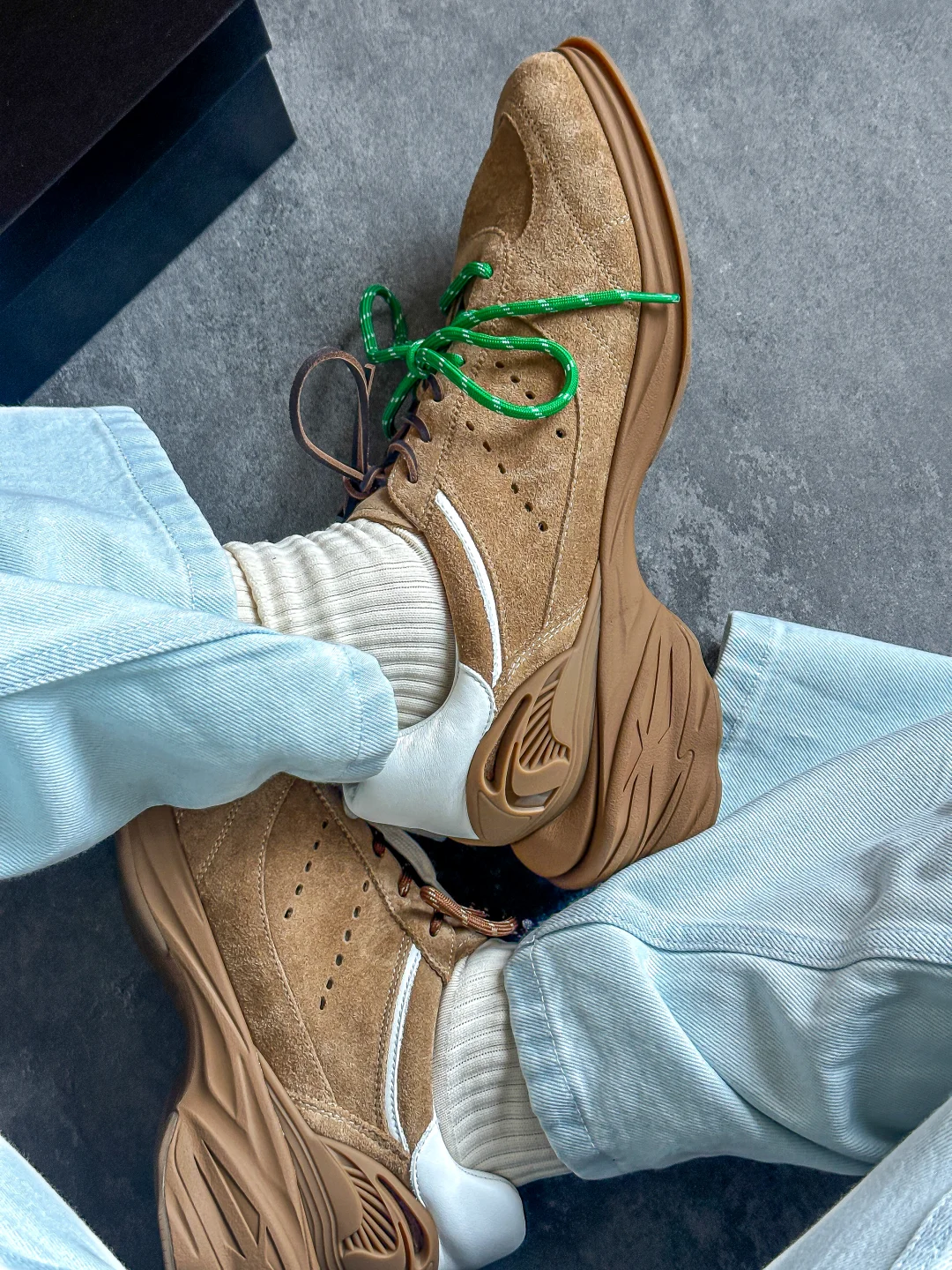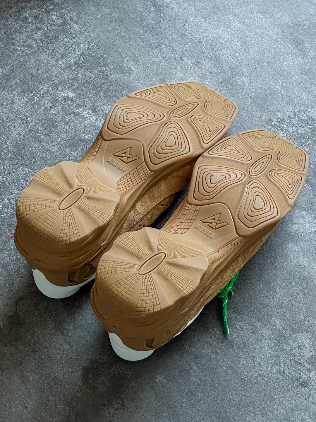 ❤️心仪了很久的小众鞋子,觉得是有自己设计风格在的。分享他们的一双新款TRIPLE 500: -混血气质: 异形后跟和鞋底相当抓眼球、而且有机的造型也很有特色。 鞋头很有意思的做了一个小方头,盖鞋面穿的时候露出来很别致。 -细节丰富: 鞋面采用了柔软的麂皮、刷色感明显,舒适度也不错。同时用白色的线做了鞋面划分,很细节。 配有白色和棕色的混色鞋带(绿色是我自己配的)。皮质的鞋尾、内衬和鞋垫也兼具点睛和质感。 作为彩蛋、增高效果也不错[偷笑R]