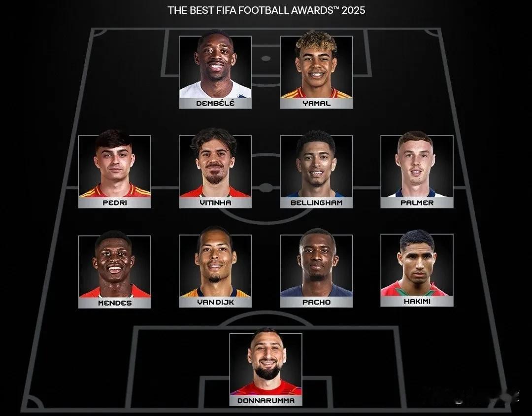 如果撤下贝林厄姆,换上姆巴佩,阵型由442变为433,一切都会变得合理。 为了让贝林厄姆入选世界足坛年度最佳阵容,居然放弃了姆巴佩和哈兰德,阵型由传统的433变为了442。 近些年,世界足坛年度最佳阵容的阵型都是433,因为前锋位置巨星特别多,左边锋C罗、右边锋梅西几乎成为标配。 今年的最佳阵容,突然变为了442阵容,少了一名前锋,多了一名中场。 4名中场,帕尔默有世俱杯冠军和欧协联冠军,维蒂尼亚有欧冠冠军和法甲冠军,佩德里有西甲冠军。只有贝林厄姆四大皆空,最不应该入选。 姆巴佩在世界足球先生评选中排名第三,是443阵型左边锋的最佳人选,与亚马尔可以两翼齐飞,登贝莱担任中锋。世界足球先生前三名登贝莱、亚马尔、姆巴佩组成锋线三叉戟,是最合理的配置。