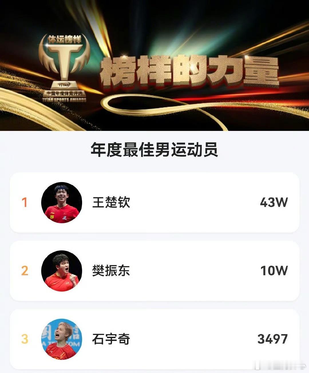 王楚钦孙颖莎是大众喜欢的运动员2025体坛榜样年度评选大众评选环节圆满落幕。经过广大网友的热烈参与,国球男女单打运动员王楚钦、孙颖莎分获2025体坛榜样年度评选大众投票男女最佳运动员,同时斩获大众评选年度最佳组合奖项!作为近些年混双项目的顶级组合,也是巴黎奥运会的混双冠军!期待他她们在各自比赛里取得更优异成绩!两位选手的人气一直可以说是国乒里数一数二的!拿下男女最佳,对实力也是的认可的!祝贺两位!