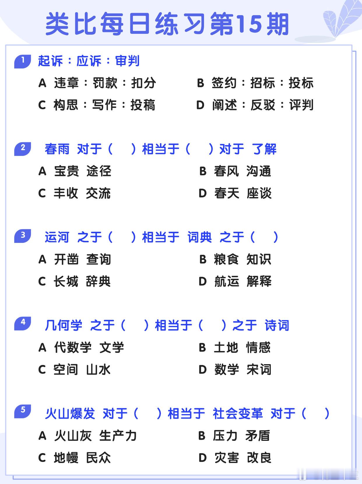 图推类比每日练习第15期图推难度:☆☆类比难度:☆☆开学元气加油站决战公考省考2
