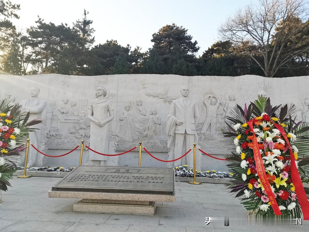 北京西山国家森林公园,无名英雄广场,陈宝仓、朱枫、吴石、聂曦(从左到右)四位烈士雕像矗立在纪念碑前。1949年前后,我党派遣1500多名干部奔赴台湾,为解放台湾而进行秘密工作,其中1100多人因身份暴露被国民党当局公审杀害。为纪念1950年代牺牲在台湾的烈士,中国人民解放军总参谋部联络部,于2013年在北京西山国家森林公园,建立了无名烈士纪念广场。 纪念碑上,镌刻着毛泽东在1950年为纪念“密使一号”吴石,专门写的五言绝句《赞密使一号》:惊涛拍孤岛,碧波映天晓。虎穴藏忠魂,曙光迎来早! 2025年11月,赴北京公干专门去西山无名英雄纪念广场,献上一束鲜花,以表达无尽的哀思和对烈士的敬意!