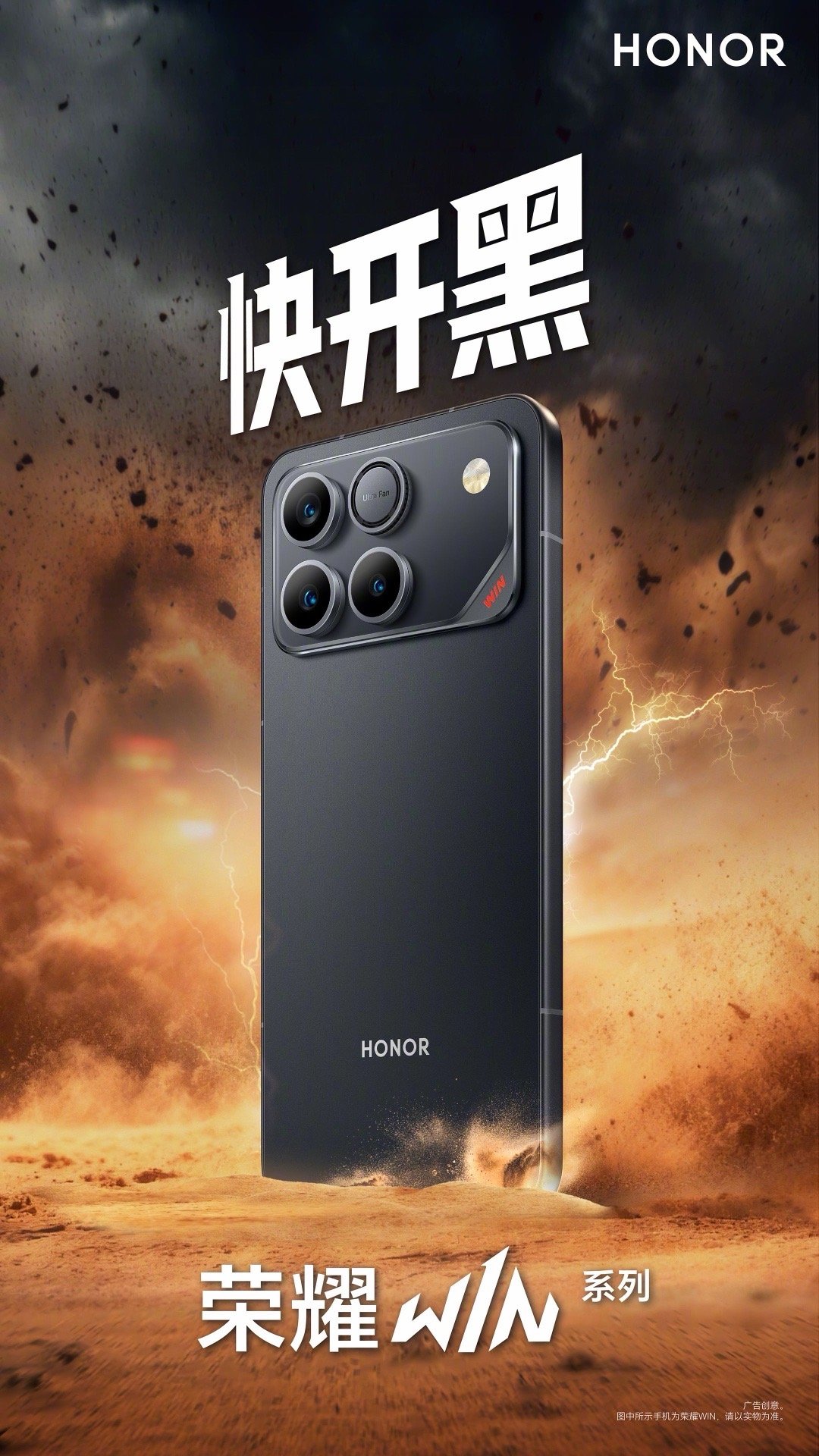 荣耀WIN系列发布会定档12月26日,将推出荣耀WIN和荣耀WIN RT两款机型。三款配色:指定赢 / 快开黑 / 不怕蓝,喜欢哪款?