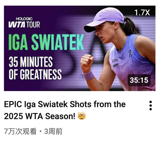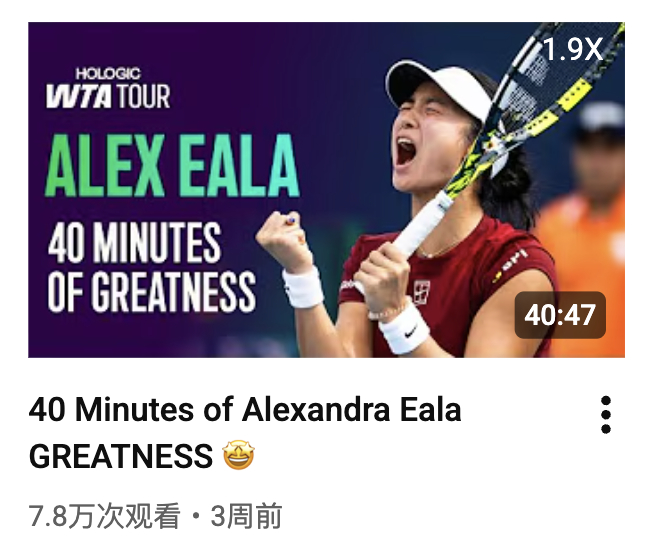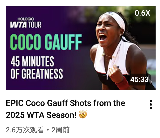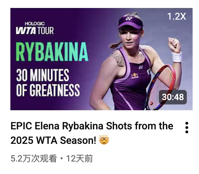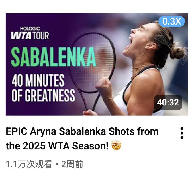 WTA 官方专门制作了 2025 赛季长集锦的选手:郑钦文、萨巴伦卡、高芙、莱巴
