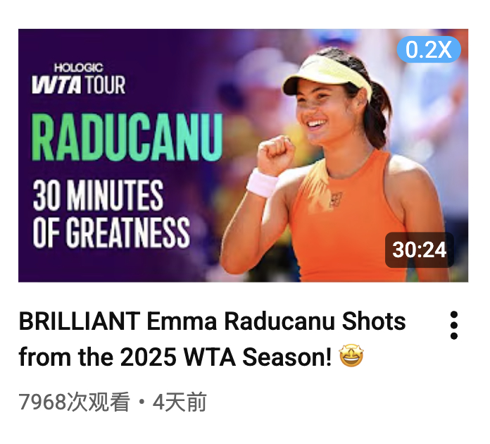 WTA 官方专门制作了 2025 赛季长集锦的选手:郑钦文、萨巴伦卡、高芙、莱巴金娜、斯瓦泰克、拉杜卡努、伊埃拉体育大赏我的年度赛场记忆