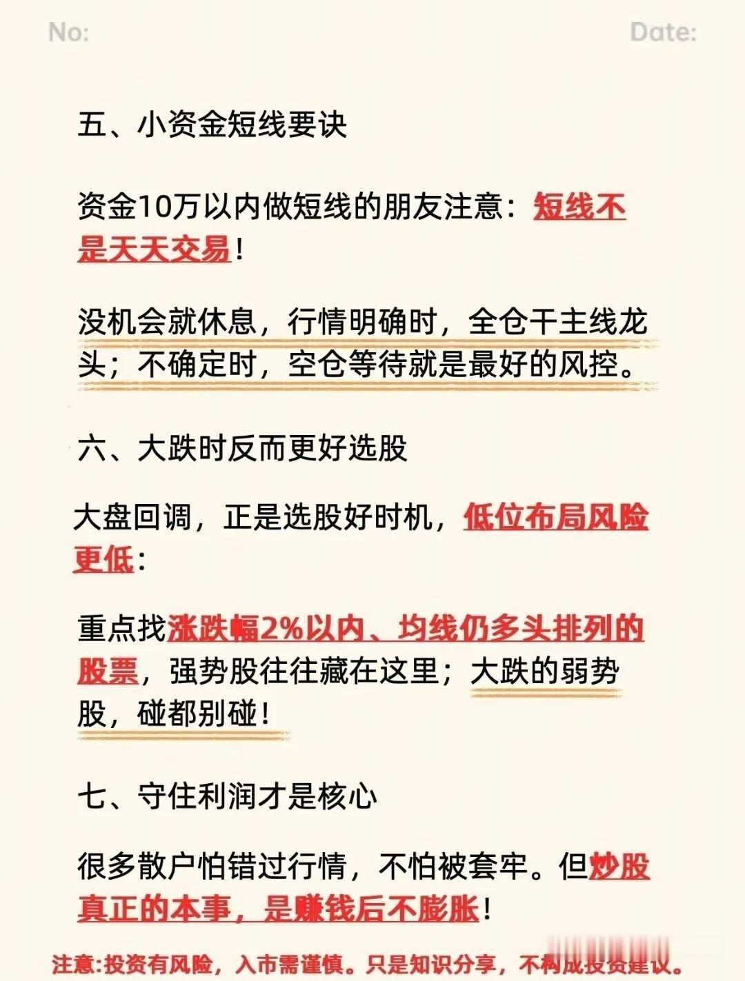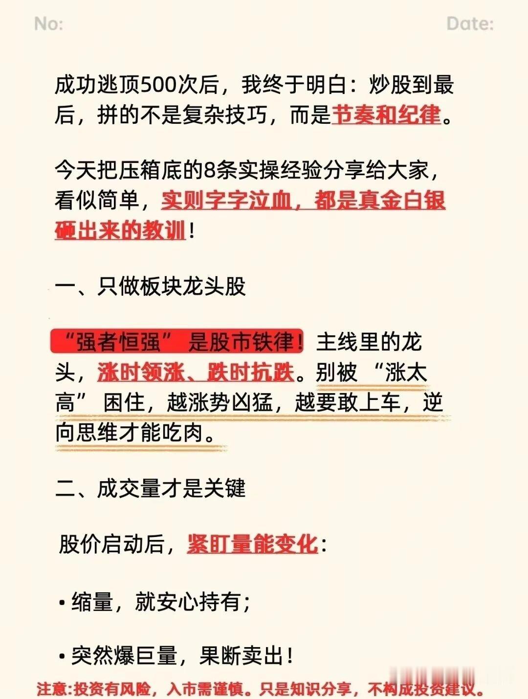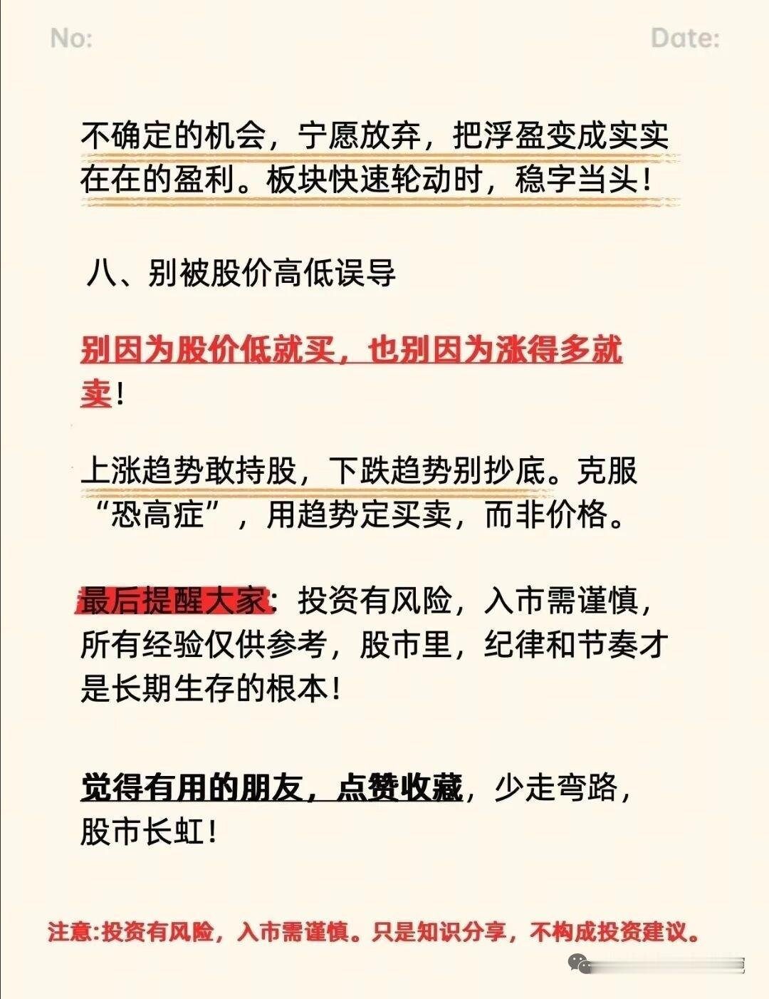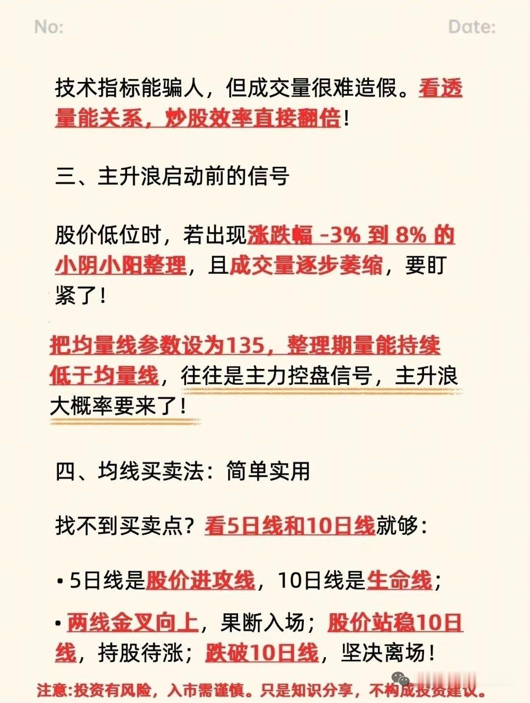 炒股老亏钱怎么办?一定要学习前人的经验和技术,不要让自己的辛苦钱去交无用的学费!!炒股总踩坑?这7个均线口诀和8条实用经验帮你理清思路! 均线口诀:均线粘合等发散,多头发散大胆干;20日线止跌看反弹,放量阴要跑、缩量阴敢加;5日线不破拿稳,60日线上穿再进场,突破20日线等回踩更稳妥。 简单实用的均线技巧,看懂少走3年弯路,建议收藏慢慢看~ (理财有风险入市需谨慎,资料取材网络仅供参考,不能完全套用)炒股经验 股票投资小技巧 炒股炒股技巧 股市避坑小技巧 股市交易技巧 股票交易思路