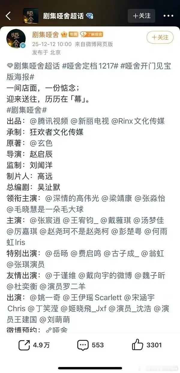 人人都吹的新丽➕大ip 《哑舍》招商情况,和大奉同款班底,除了男主。再看看王鹤棣
