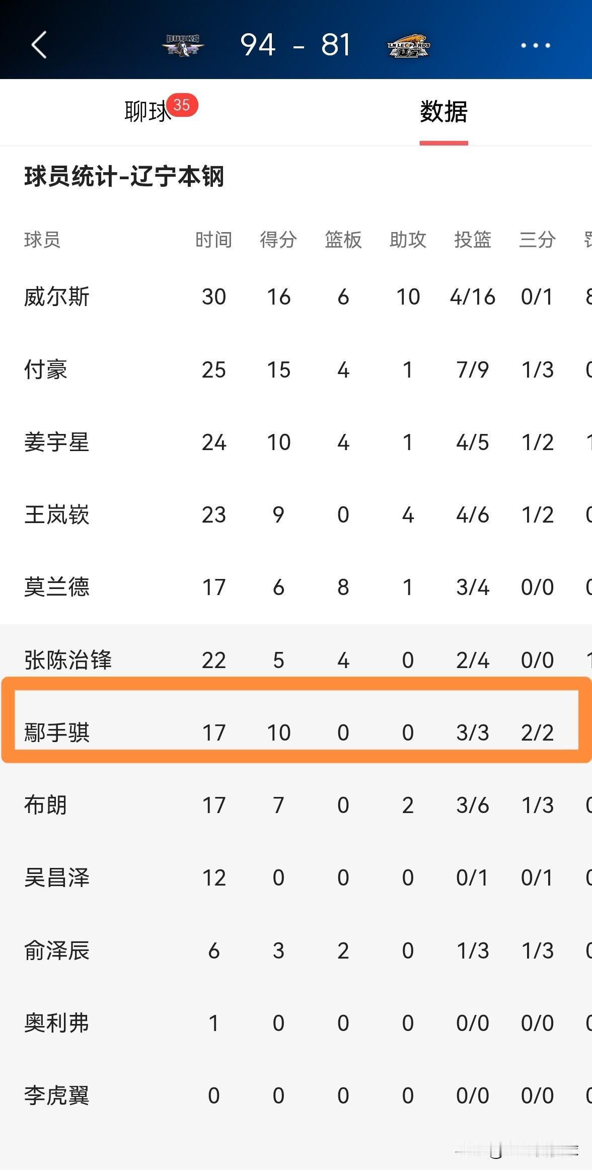 辽宁本钢大将鄢手骐真是一位顶级3D!虽然今天辽宁本钢在客场以81:94不敌北京北汽,但是鄢手骐在攻防两端都打出了非常不错的表现。 整场比赛下来,鄢手骐替补出战17分钟,投篮3中3,其中三分球2中2、罚球2中2非常高效的得到10分2抢断。 坦白说,在经历了多个赛季的磨练之后,如今的鄢手骐已经成为了CBA赛场上的顶级3D。