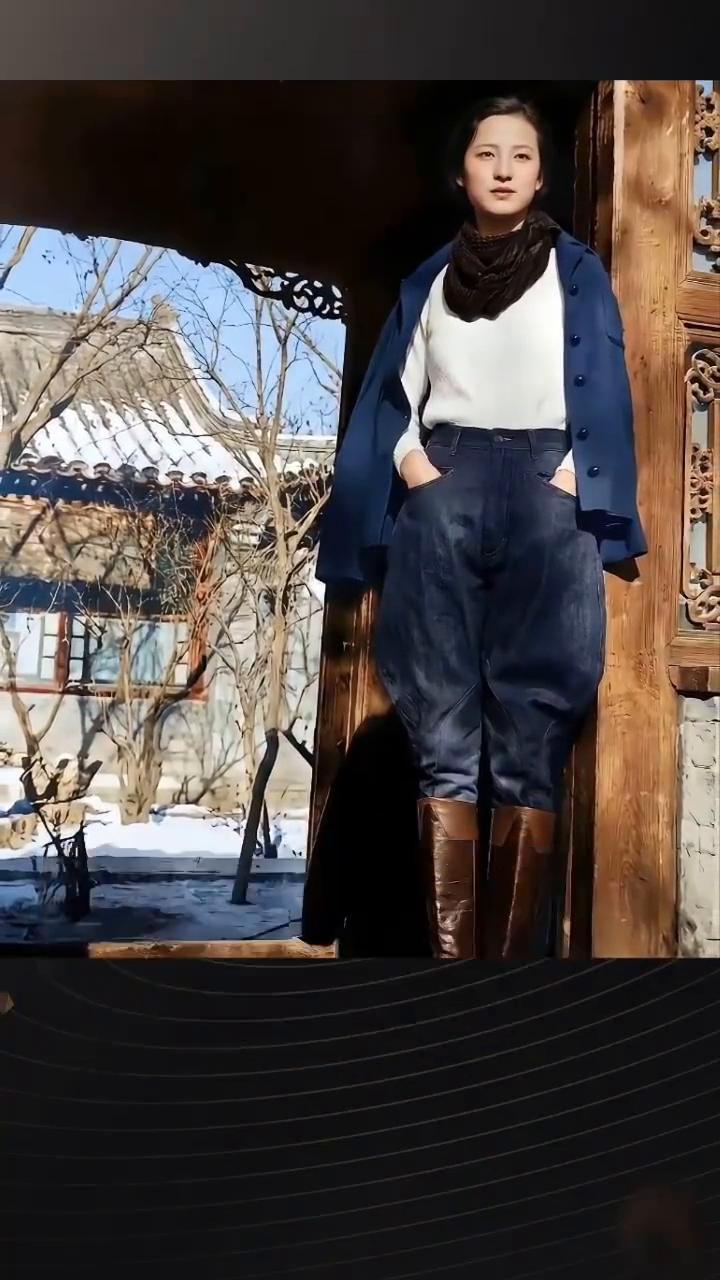 这是31岁的林徽因在北平家门口的真实样貌,都看看吧,这可不是演员扮演的。这是拍摄于1936年,林徽因伫立在门口,她的这个造型真的是美爆了!小仙女内搭白色的毛衣,搭配着深系列的牛仔裤和深色外套,尽显干练洒脱与摩登时尚!