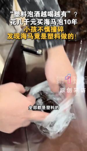 12月5日,广东梅州,一男孩去爷爷家玩耍时,不小心碰翻了爷爷泡了10年的海马酒,爷爷心疼的不行,正准备发脾气,却发现地上的海马不对劲,捡起来一看竟然都是塑料的,这才意识到,自己十多年来喝的一直是用塑料泡的酒 酒坛子常年占据八仙桌最显眼的高处,瓶口封得严严实实,裹着红布。每逢家里来了客人,老爷子总要小心翼翼地把这坛宝贝捧出来炫耀一番。 透过那层浑浊深褐色的液体,隐约能看见里面泡着形状“威武”的海马,还得搭着党参、枸杞,那可是当年花了重金求来的。 为了治好那双老寒腿,这十年间,老爷子哪怕嘴馋了也舍不得大口喝,每天睡前才倒出一小酒盅,抿上一口,再配两颗花生米。 喝完还得咂巴咂巴嘴,跟儿孙们感叹:“这深海野生的东西,劲儿就是大,腿脚都利索了。” 事情的转折发生在12月5号,赶上是个星期天。儿子带着小孙子回老家看望老人。大人们正聚在院子里聊着今年的收成和年底的打算,只有七八岁的小孙子一个人在屋里追猫打闹。 谁也没想到,屋里突然传来“嘭”的一声巨响,紧接着是玻璃碎裂稀里哗啦的声音。 院子里的说话声戛然而止。老爷子心头一紧,鞋都没提好就往屋里冲,儿子紧随其后。一进门,就看孙子缩在墙角,小脸吓得煞白,地上是一片狼藉。 那坛被老爷子视若珍宝的药酒,此刻碎成了一地玻璃渣,深褐色的酒液顺着砖缝肆意流淌,空气里瞬间充满了浓烈的酒精味和一股说不清的中药味。 看着满地乱滚的“海马”和各种药材,老爷子那是心疼得直哆嗦。这哪是碎了个坛子,这简直是在挖他的肉。 他想发火,可看着孙子快哭出来的表情,又把那股火生生咽了回去,只能颤颤巍巍地蹲下身,伸着布满老茧的手去捡那些散落在地上的“宝贝”。 儿子见状也赶紧蹲下来帮忙收拾残局。就在儿子的指尖触碰到其中一只“海马”的时候,动作突然顿住了。 不对劲。 按理说,不管是海鲜还是干货,在烈酒里足足泡了十年,早就该吸饱了水分,变得软烂或者至少有些韧性。 可手里这玩意儿,硬邦邦的,用指甲掐一下纹丝不动,边角甚至有些扎手,那种触感不像是生物的尸体,反倒带着一种工业制品的生硬感。 他把这只“海马”拿到眼前仔细端详,只见身上的纹路整整齐齐,连那种细微的凹凸感都像是模具统一压出来的,没有丝毫天然生长的杂乱美感。 为了验证心里的猜想,儿子也没吭声,直接从裤兜里掏出了平时抽烟用的打火机。 “滋啦”一声,火苗刚凑近那只“海马”的尾巴,一股令人作呕的焦臭味立马窜了出来,瞬间盖过了屋里的酒香。 只见被火烧到的地方迅速发黑、卷曲,然后开始熔化,最后滴下来几滴黑乎乎的黏液,在地上凝成了一个个小疙瘩。 这哪里是什么深海珍品,分明就是聚乙烯!甚至在另一只没烧毁的假海马肚子隐蔽处,隐约还能分辨出一个小小的“PE”标志——那是塑料的化学代号。 老爷子手里还攥着两个刚捡起来的“海马”,整个人僵在原地,像是被雷劈了一样。 他不可置信地看着儿子手里那团还在冒着黑烟的胶状物,又看看自己这十年每晚都要喝进肚子里的“药引子”,张了张嘴,半天没说出一句话来。 真相来得太荒诞了。原来这十年,他每天像宝贝一样供着、喝着的,根本不是什么滋补圣品,而是一坛确凿无疑的“塑料浓汤”。 回想起十年前,村里来了几个穿白大褂的流动商贩,打着“百年老字号”和“免费体检”的幌子,把他忽悠得团团转。 那个卖药的男人把胸脯拍得震天响,说什么这海马是深海刚捞上来的,经过特殊工艺处理,专门治老年人的腰腿疼痛。 老爷子一听功效,再一听那几千块的价格——虽然贵,但比城里大药房动不动好几万的便宜多了,当时头脑一热,把准备买化肥的钱都掏了出来。 现在想想,那商贩敢这么大肆行骗,算准的就是这种心理:一来海马泡在深色酒里,隔着玻璃根本看不真切;二来老人不舍得轻易拿出来把玩;三来等十年后发现真相,那流动摊贩早就不知道跑到天涯海角去了,连个人影都抓不到。 更有意思的是,那些造假的人手段极为低劣却又精准。这些所谓的“海马”,多半是从义乌批发来的仿真玩具,成本几毛钱一个。 奸商们用红茶水浸泡染色,再喷上一点咸鱼味的香精,就能把一堆塑料垃圾包装成治病救人的“神药”。 老爷子这一喝就是十年。要不是孙子今天这误打误撞的一摔,他恐怕还得把这“塑料汤”继续喝下去。 酒里的酒精常年浸泡塑料,谁知道里面析出了多少塑化剂和有害化学物质? 想起来前阵子总是觉得胃里不舒服、肝区隐隐作痛,这会儿全都有了合理的解释。医生可是说过,长期摄入微塑料和塑化剂,对肝肾的损伤是不可逆的。 老爷子叹了口气,把手里的假货狠狠丢进垃圾桶,伸手摸了摸还在抽泣的孙子脑袋:“不哭了好孩子,今天多亏了你。这一跤摔得好,算是救了爷爷的命。”