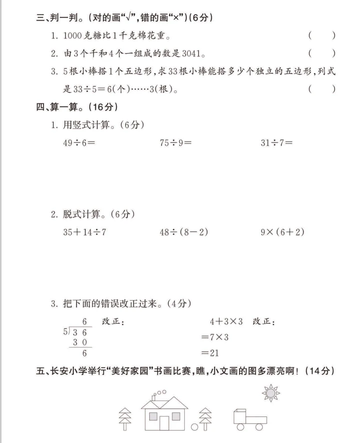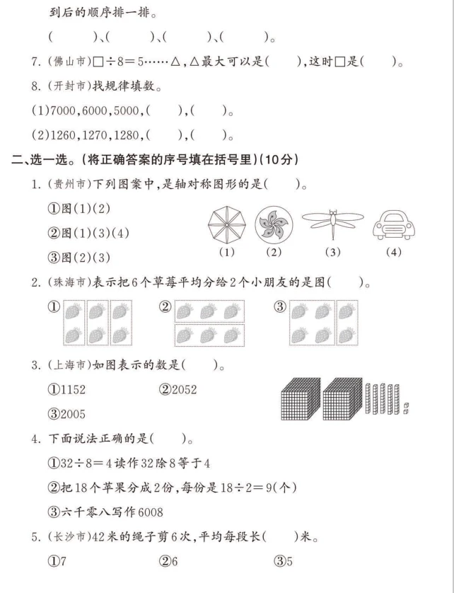 小学数学易混易错题二年级下册