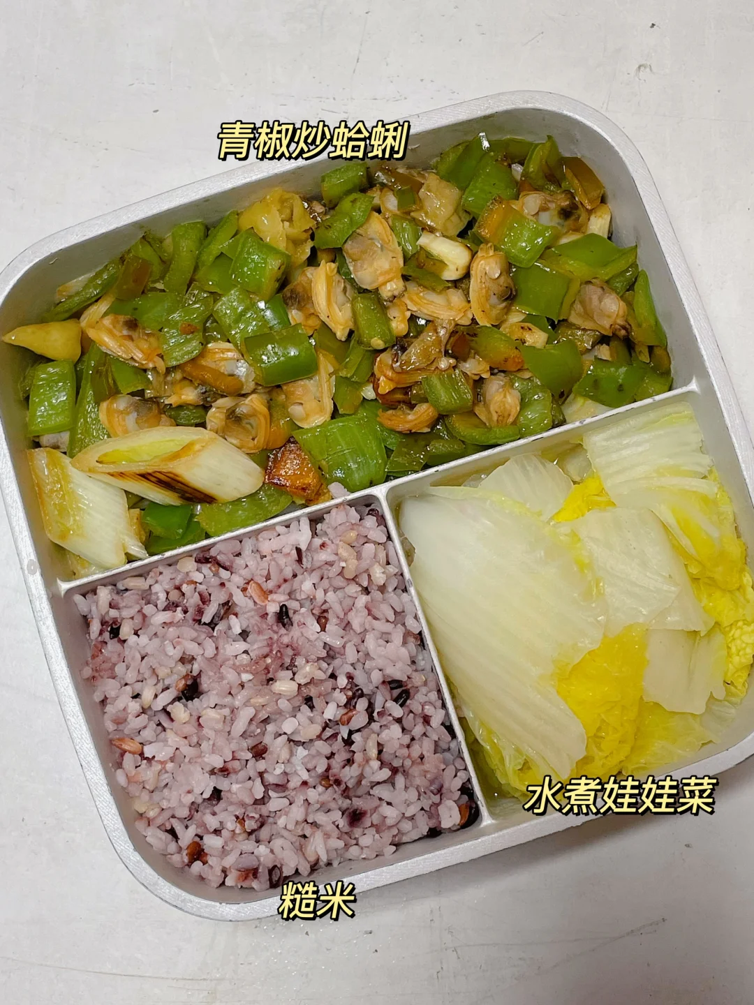 📍糙米+水煮娃娃菜+青椒炒蛤蜊