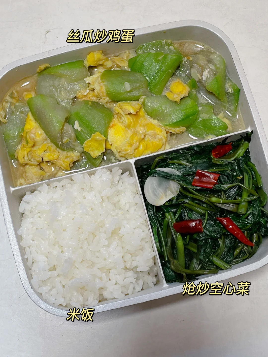 📍米饭+炝炒空心菜+丝瓜炒鸡蛋