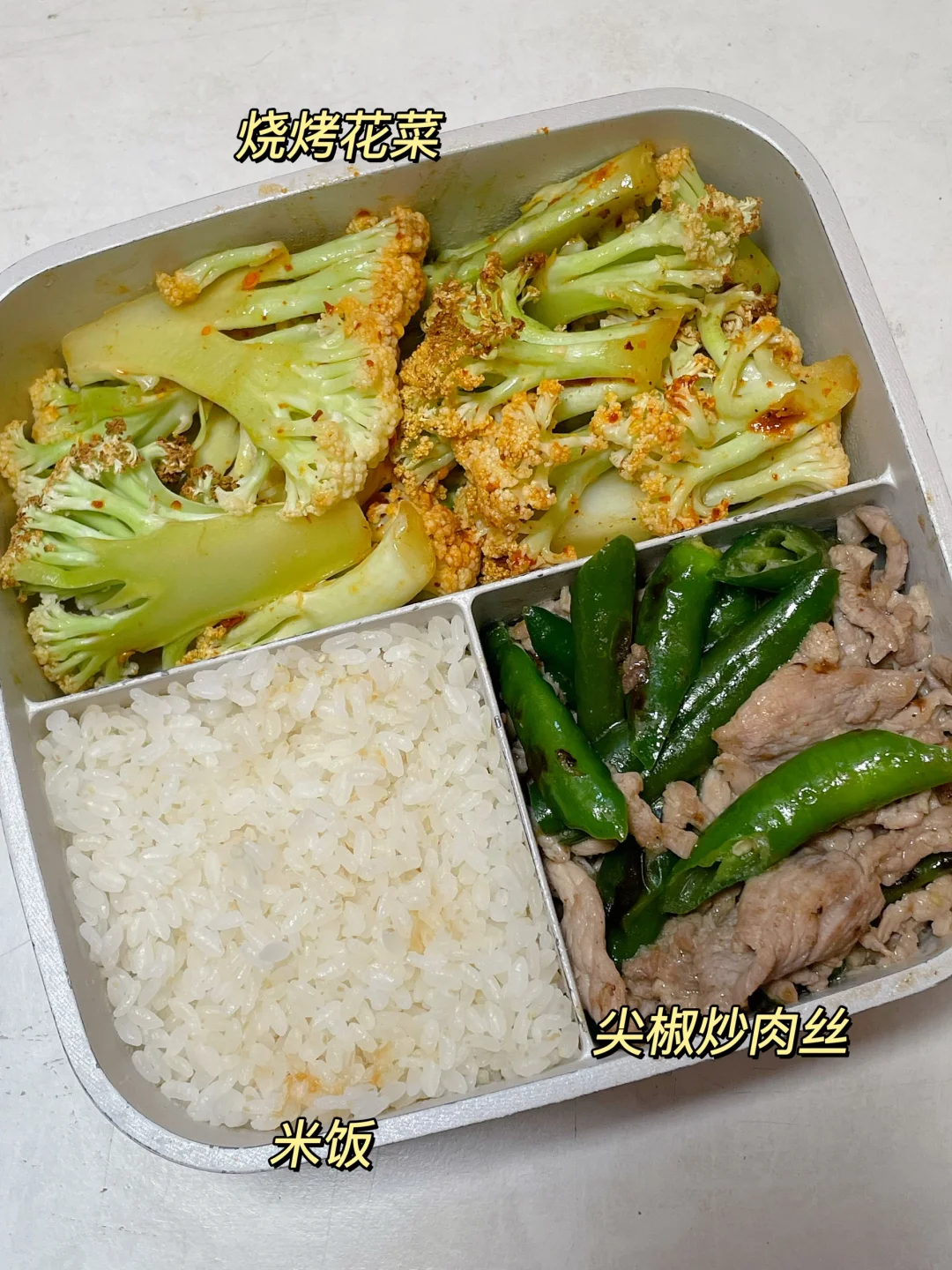 📍米饭+尖椒炒肉丝+烧烤花菜