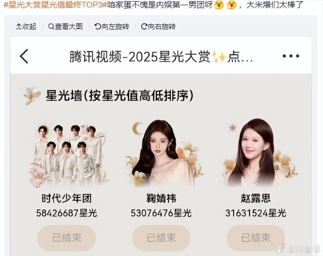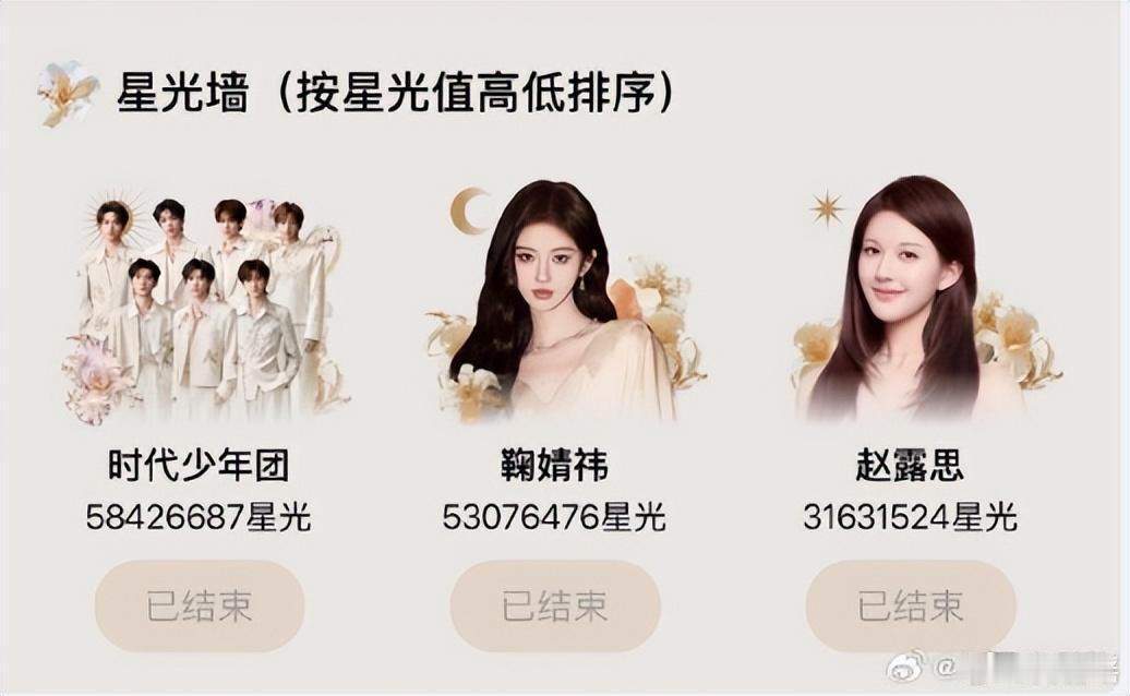 星光大赏星光值最终TOP3公布,时代少年团、鞠婧祎、赵露思居前三