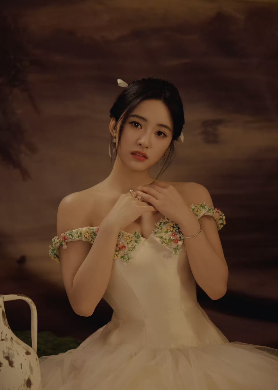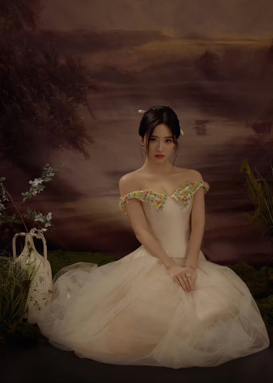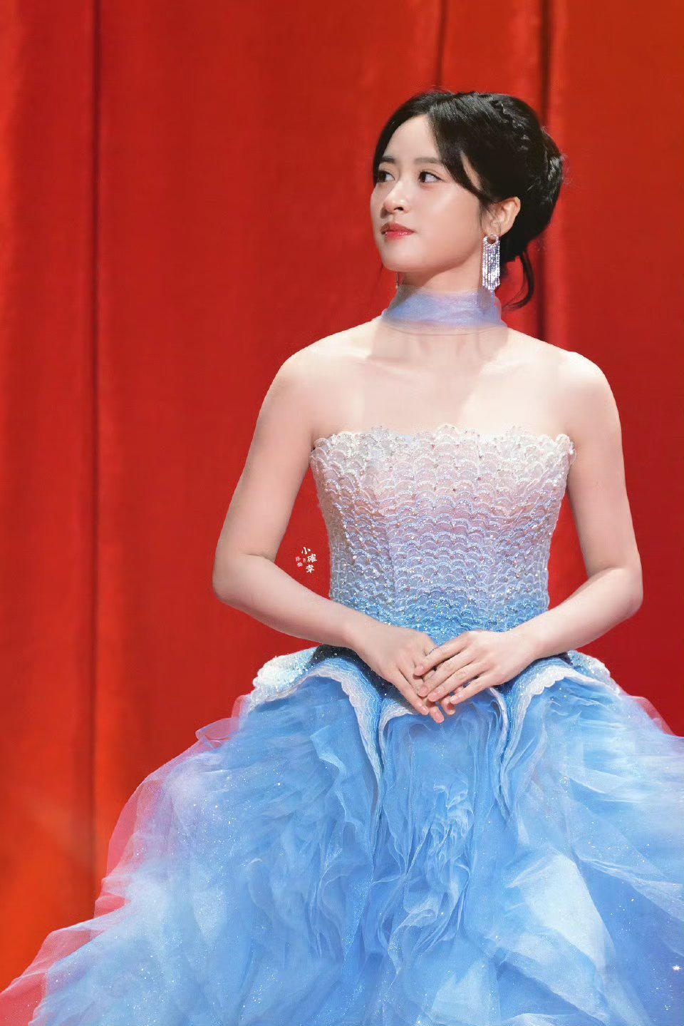 沈月国剧盛典抹胸薄纱蓝裙造型,谁懂这个月月不就是我的新娘吗,有被貌美到了呀~