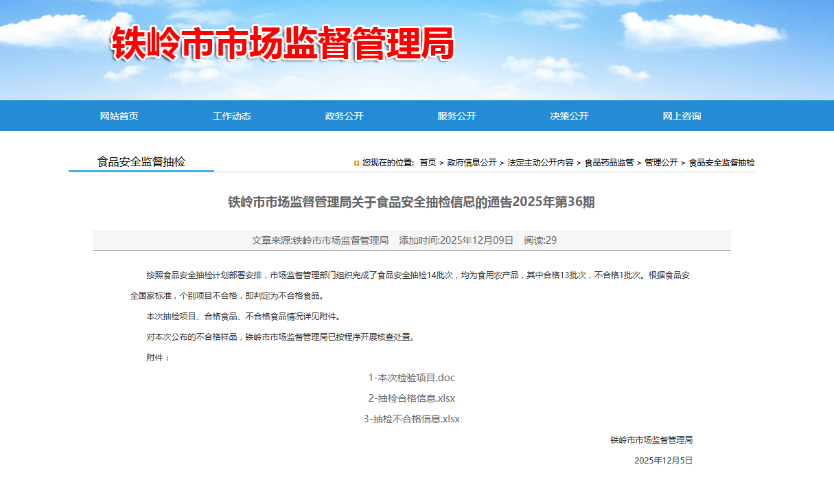 对本次公布的不合格样品,铁岭市市场监督管理局已按程序开展核查处置。