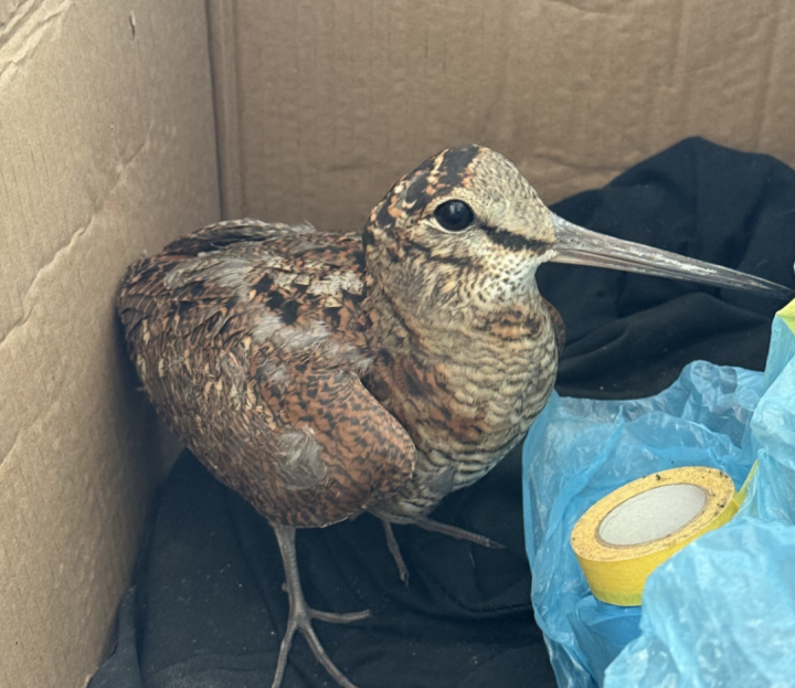 经辨认,这只“长嘴萌物”是国家二级保护动物丘鹬。动物保护协会工作人员通过查看现场视频后初步判断,这只丘鹬可能是受到了惊吓,建议先安置在安静环境中,避免二次伤害。