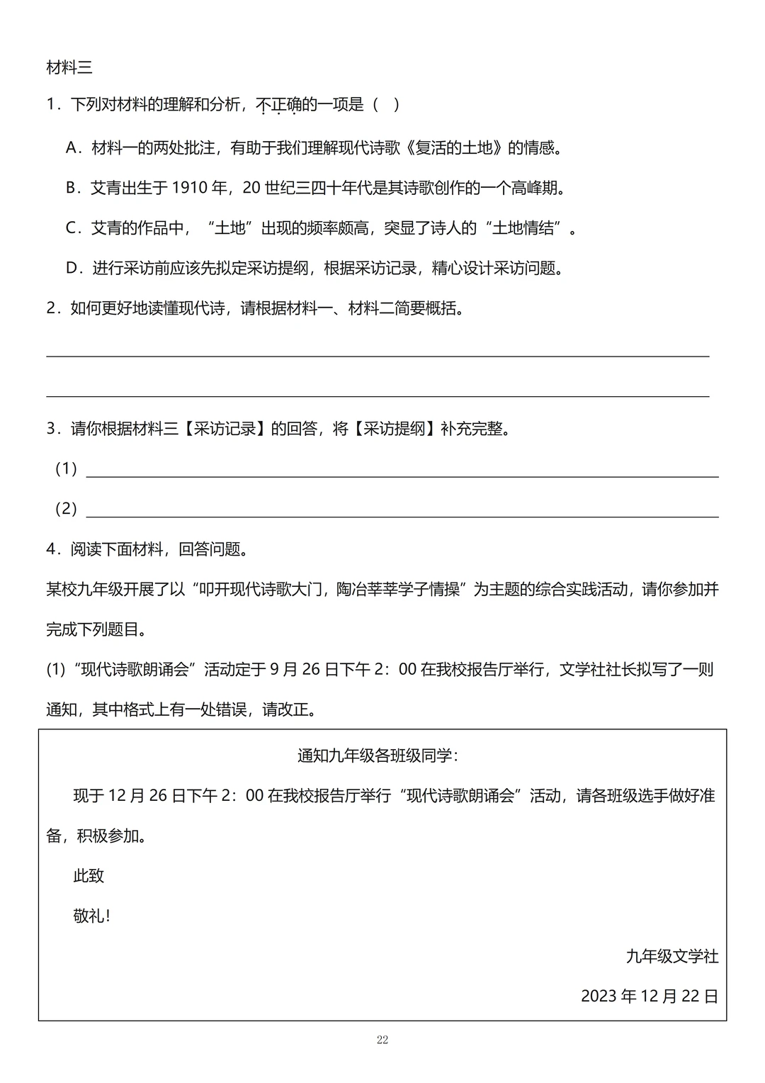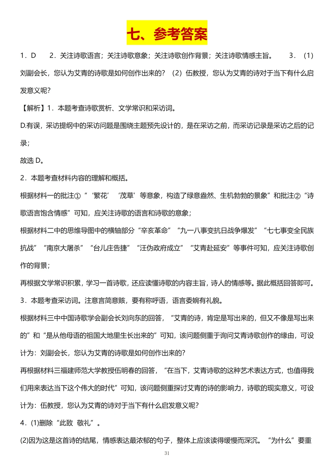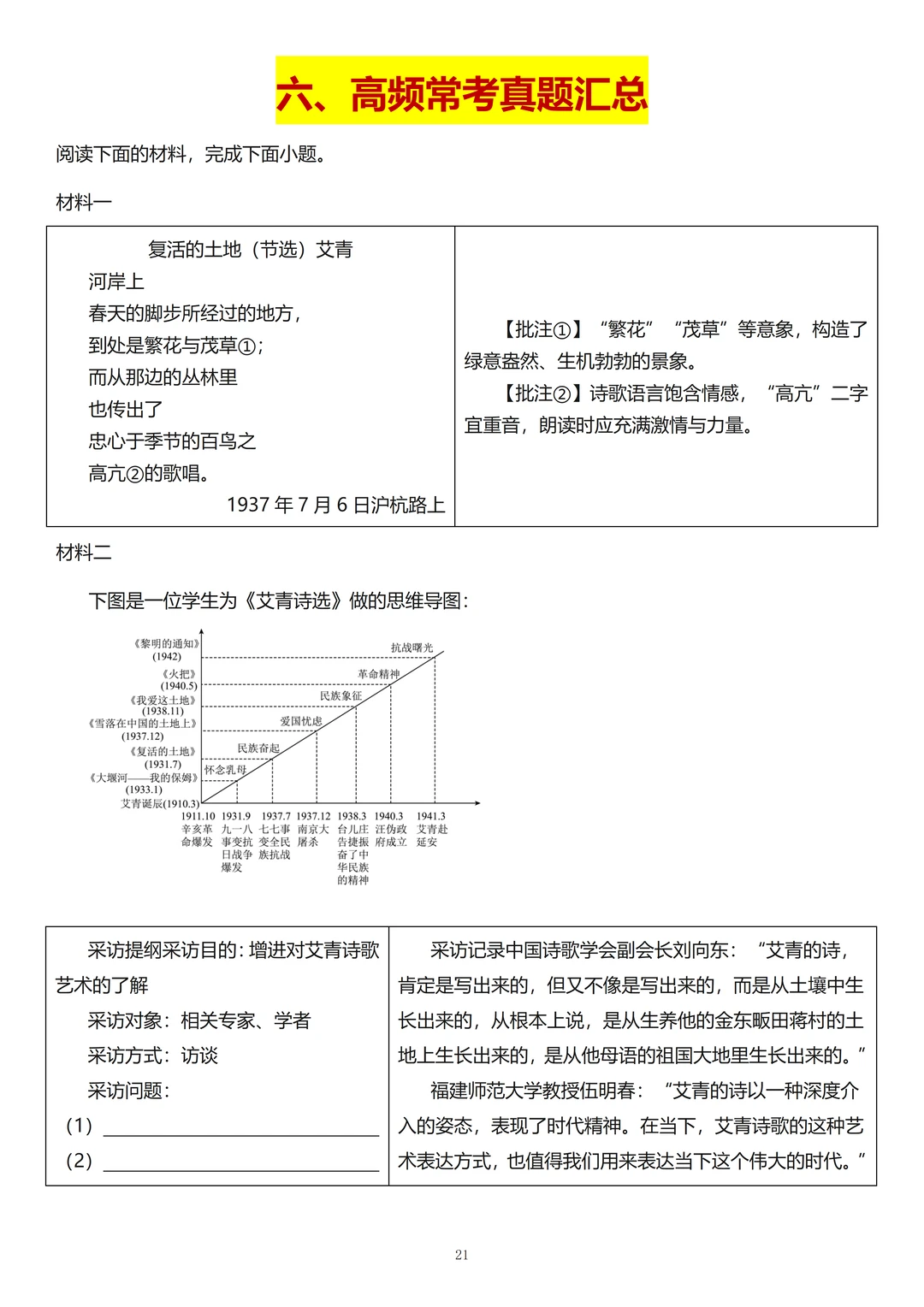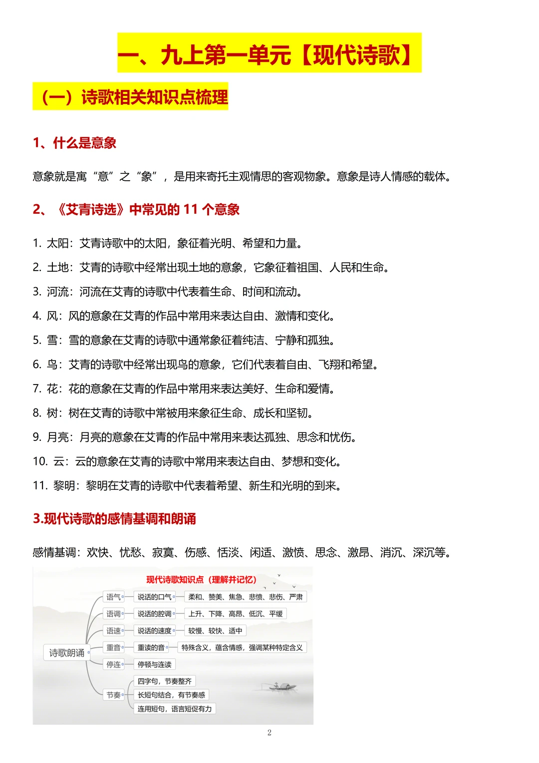 1、现代诗歌: 要掌握诗歌的意象,现代诗歌的感情基调和朗诵,期末经常结合名著《艾青诗选》来考