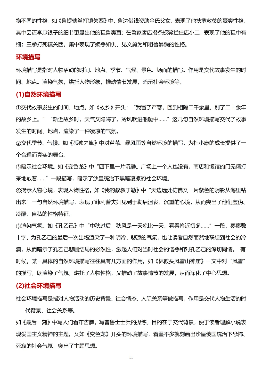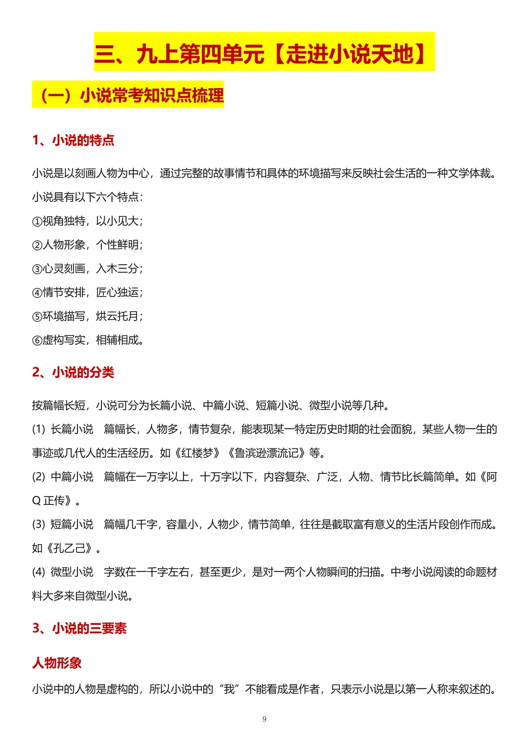 3、《走进小说天地》: 考察题目离不开小说的三要素:人物形象、故事情节和环境描写(自然环境和社会环境)