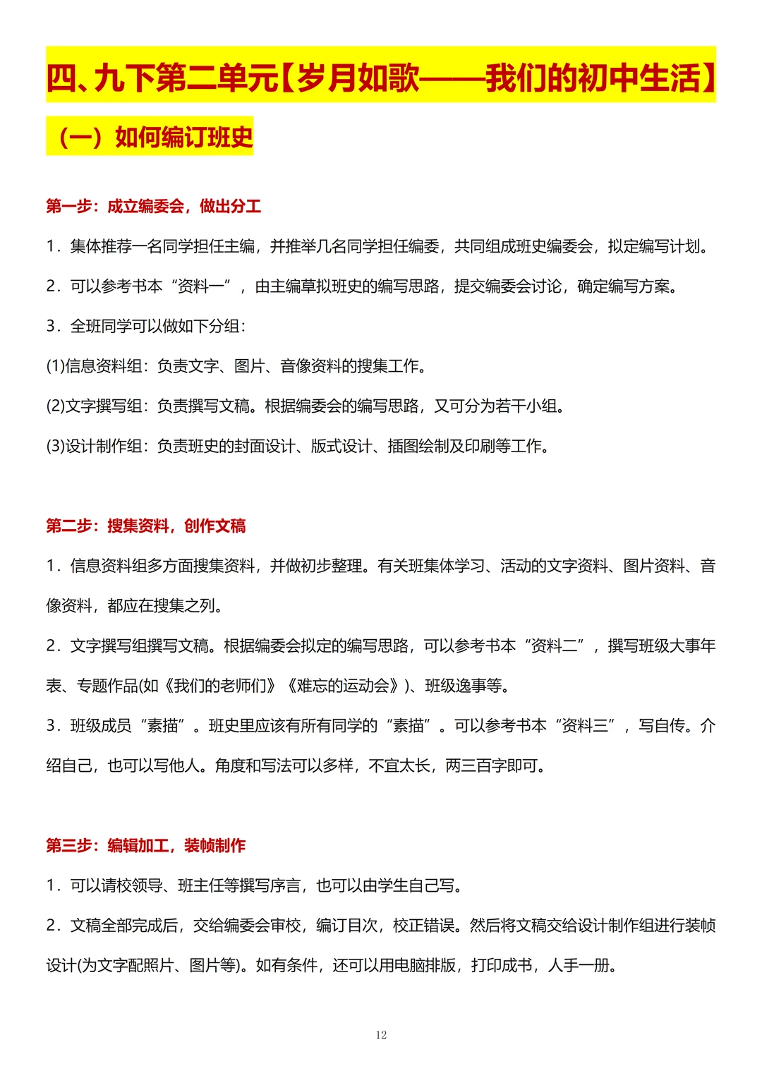4、《岁月如歌——我们的初中生活》: 了解如何编订班史,怎么设计班史的板块内容