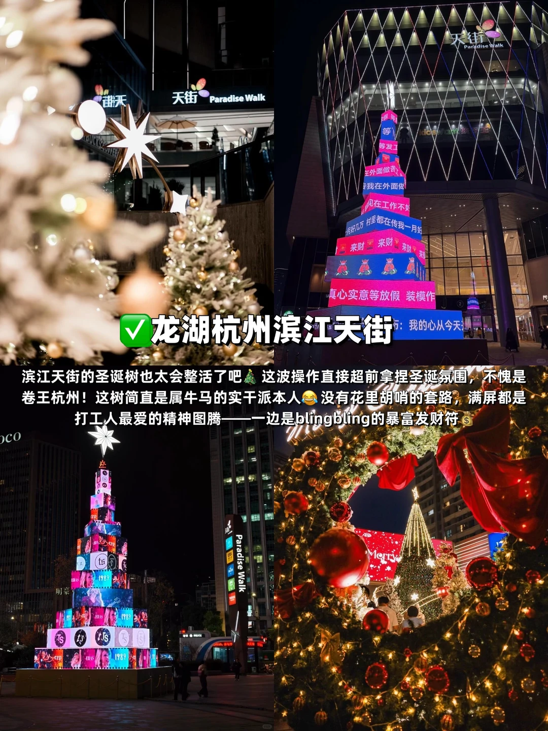 打工人专属的圣诞氛围天花板!圣诞树满屏都是“暴富发财符”“想放假”等精神图腾,blingbling的装饰超吸睛,逛吃买之余拍氛围感照片超合适🎄