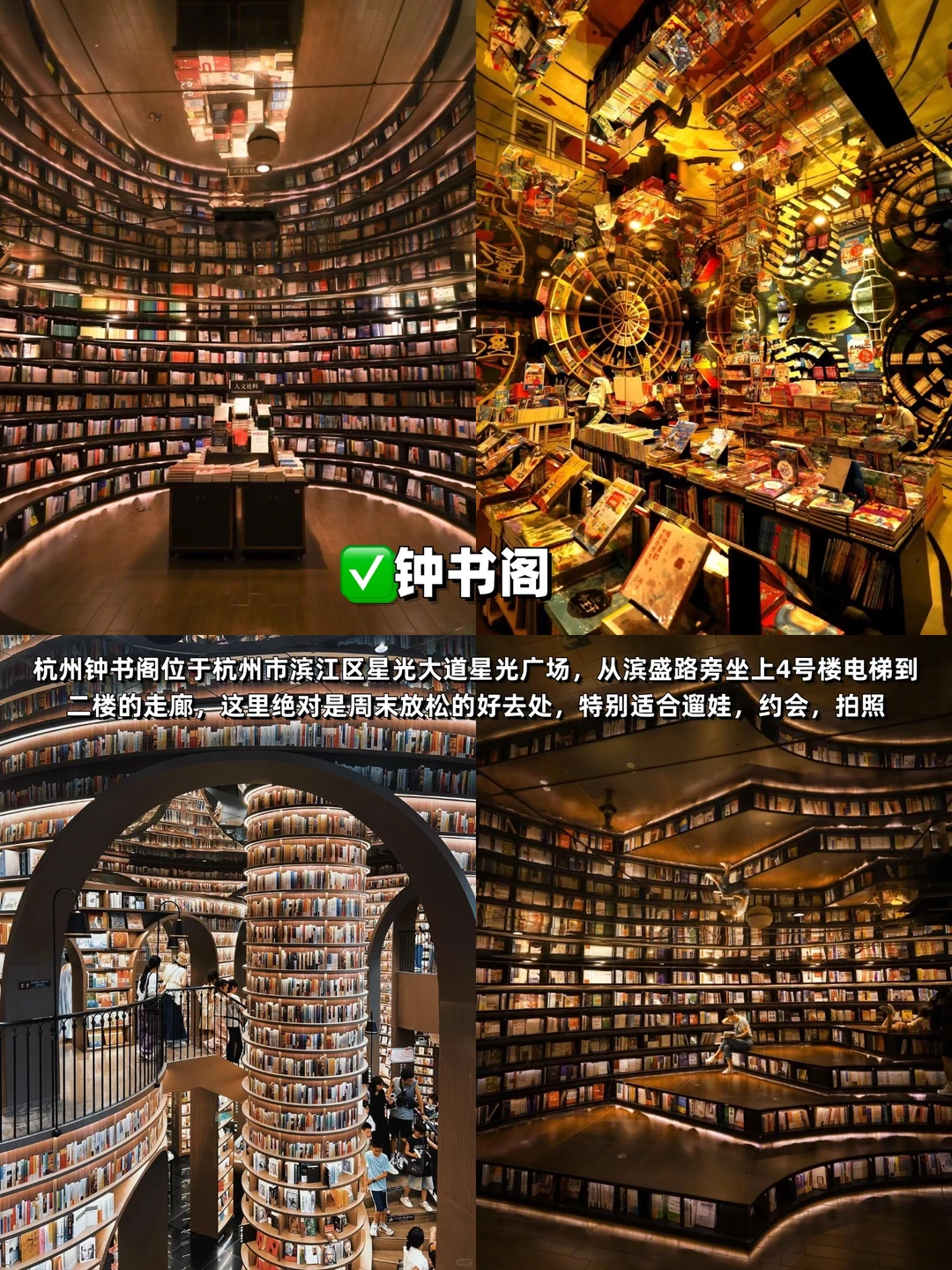 地面有成龙、张艺谋等明星手印,钟书阁的魔幻书架设计,拍照像走进魔法世界;江边还能看钱塘江落日,美到失语🌅