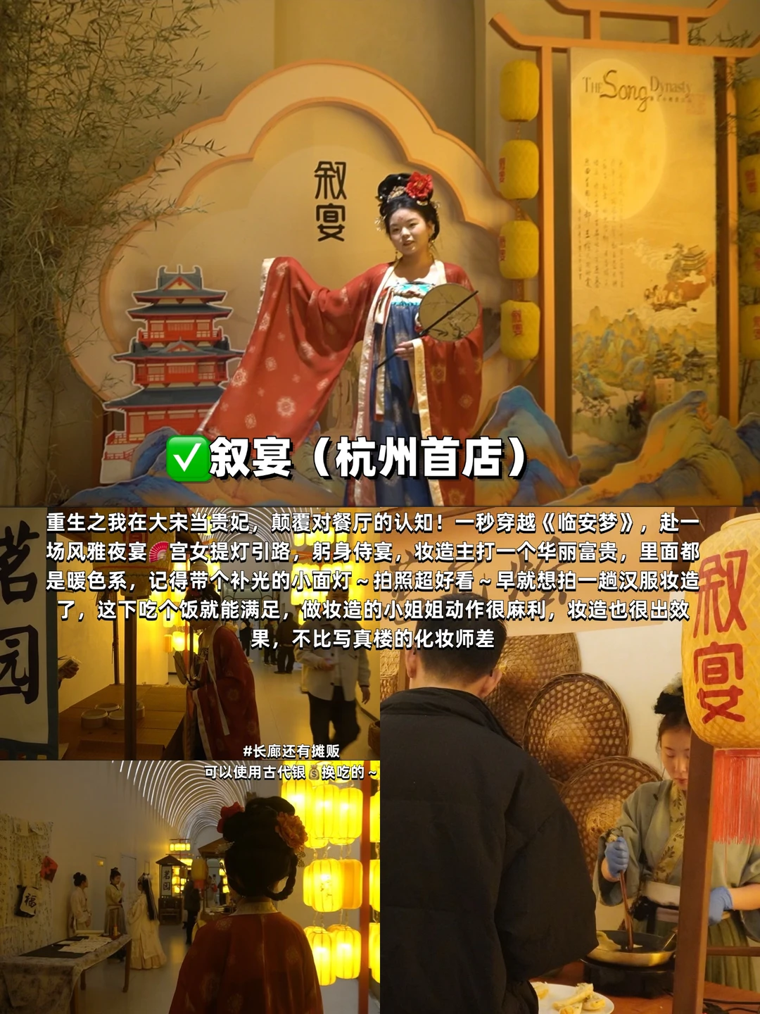 一秒穿越盛唐!宫女提灯引路,用餐时还有歌舞表演,还能体验汉服妆造,拍照巨出片,长廊里的摊贩能用古银换小吃,代入感很强的主题餐厅