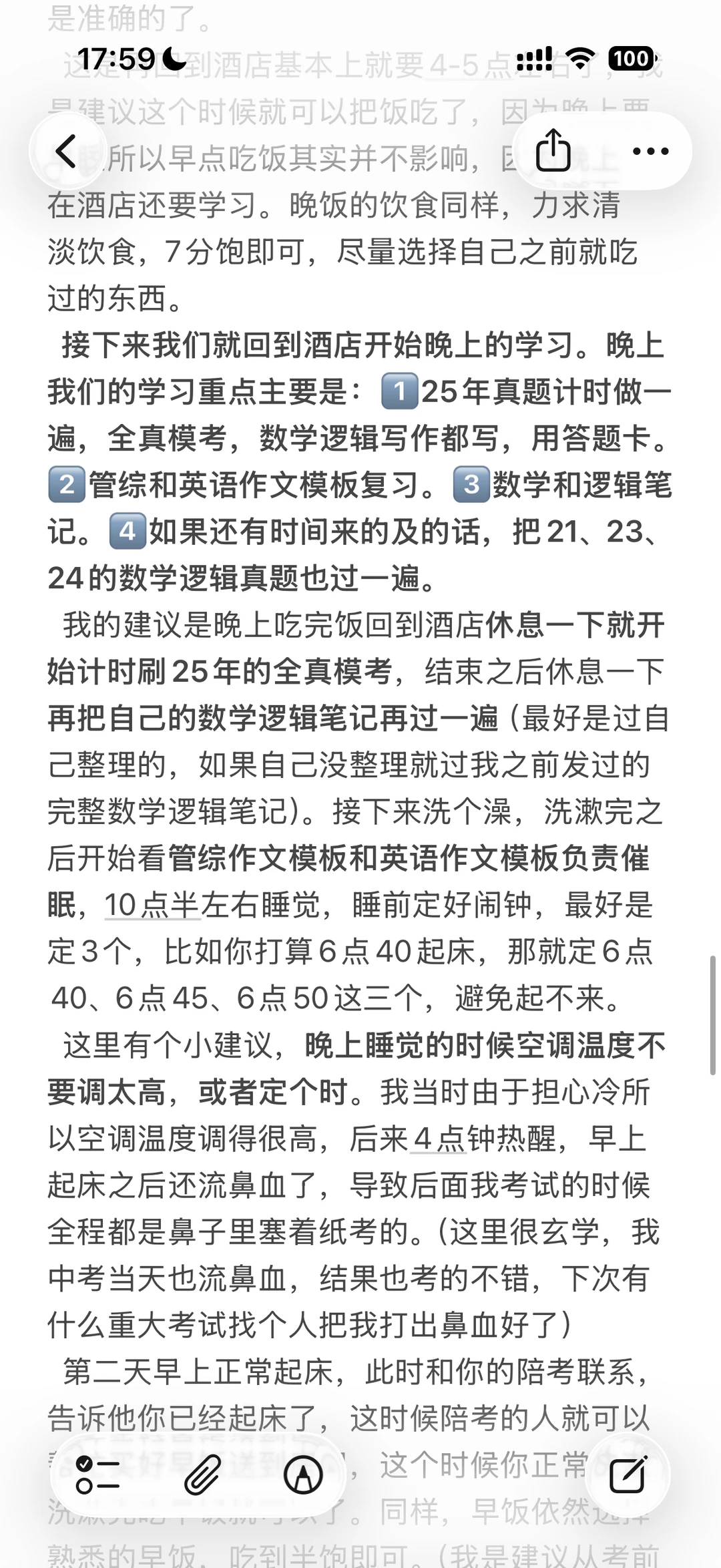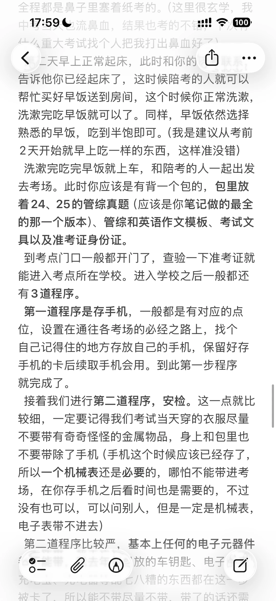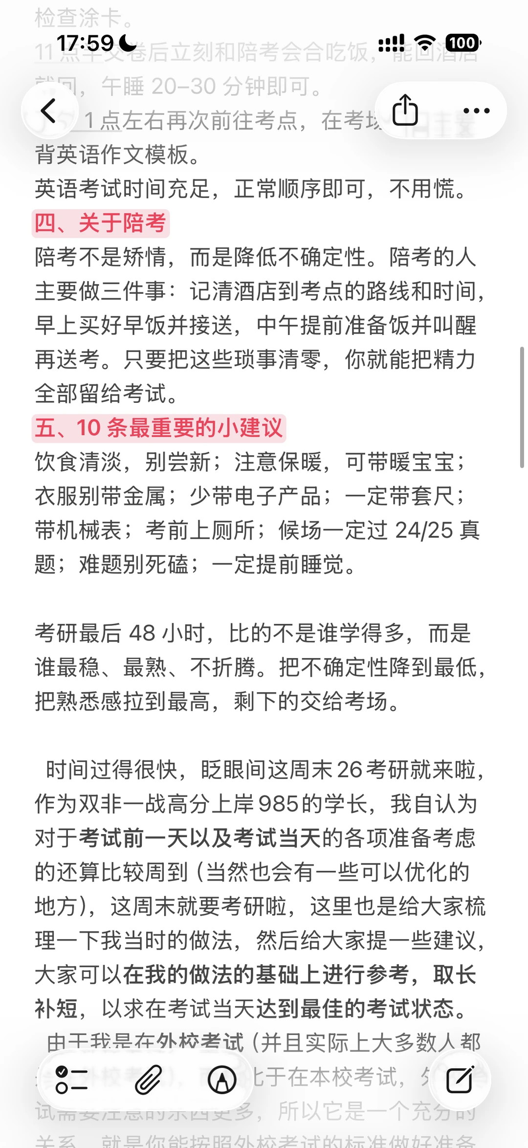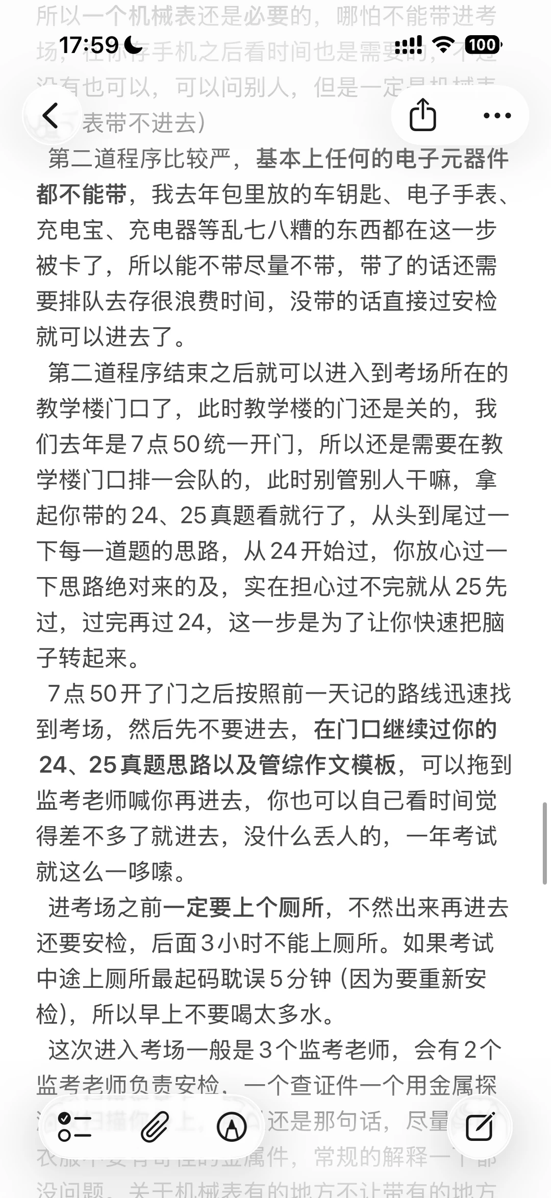 所有内容全部是我从双非一战上岸985的考前实测,每一步都环环相扣,真正模考过的就知道我每一步安排的目的。比如在考场门口过思路就是为了让脑子转起来。 千万不要觉得难为情,一年就这么一次,都按照这个思路好好准备! 都来吃研究生的苦,一个都跑不掉!