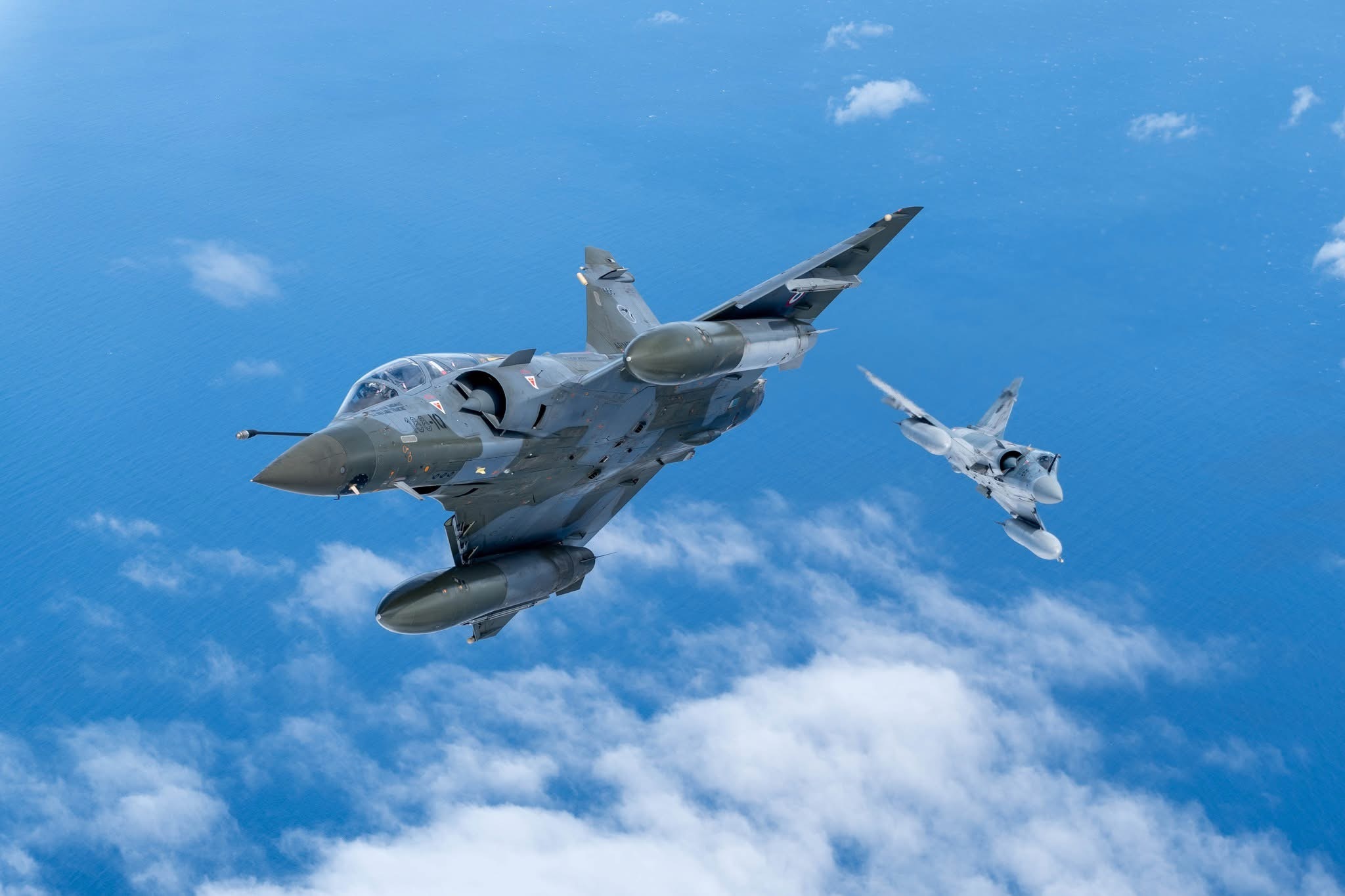 印度洋上空的幻影同框|空对空摄影今日幻影 法国空天军(AAE)EC3/11“科西嘉”中队幻影2000-5F和幻影2000D军用飞机信息汇 2025年12月14至17日,法国空天军于印度洋开展以远程投送和敏捷部署为主题的“Sawabi3”演习,此次演练幻影2000-5F、幻影2000D战机和CN235运输机编队飞行5小时,长途奔袭4000公里,历经3次空中加油,从吉布提飞抵留尼汪岛。结合上条微博(网页链接)可以发现,从EC1/3“纳瓦拉”中队和 EC3/3“阿登”中队抽调加强到吉布提的2架幻影2000D(“IR”和“IQ”号机,生产批号分别为“674”和“666”)机号已从“3-IR”和“3-IQ”(意思是隶属于第3联队)改为“188-IR”和“188-IQ”(意思是隶属于第188空军基地,即吉布提),垂尾分队/中队标识也改为“科西嘉”中队的标志。凡事就怕认真二字,任何领域,只要认真学习、细心观察、勤奋整理、检索整合、再加上时间积累,一定能让你拥有不一样的视野。Photo credit: AAE
